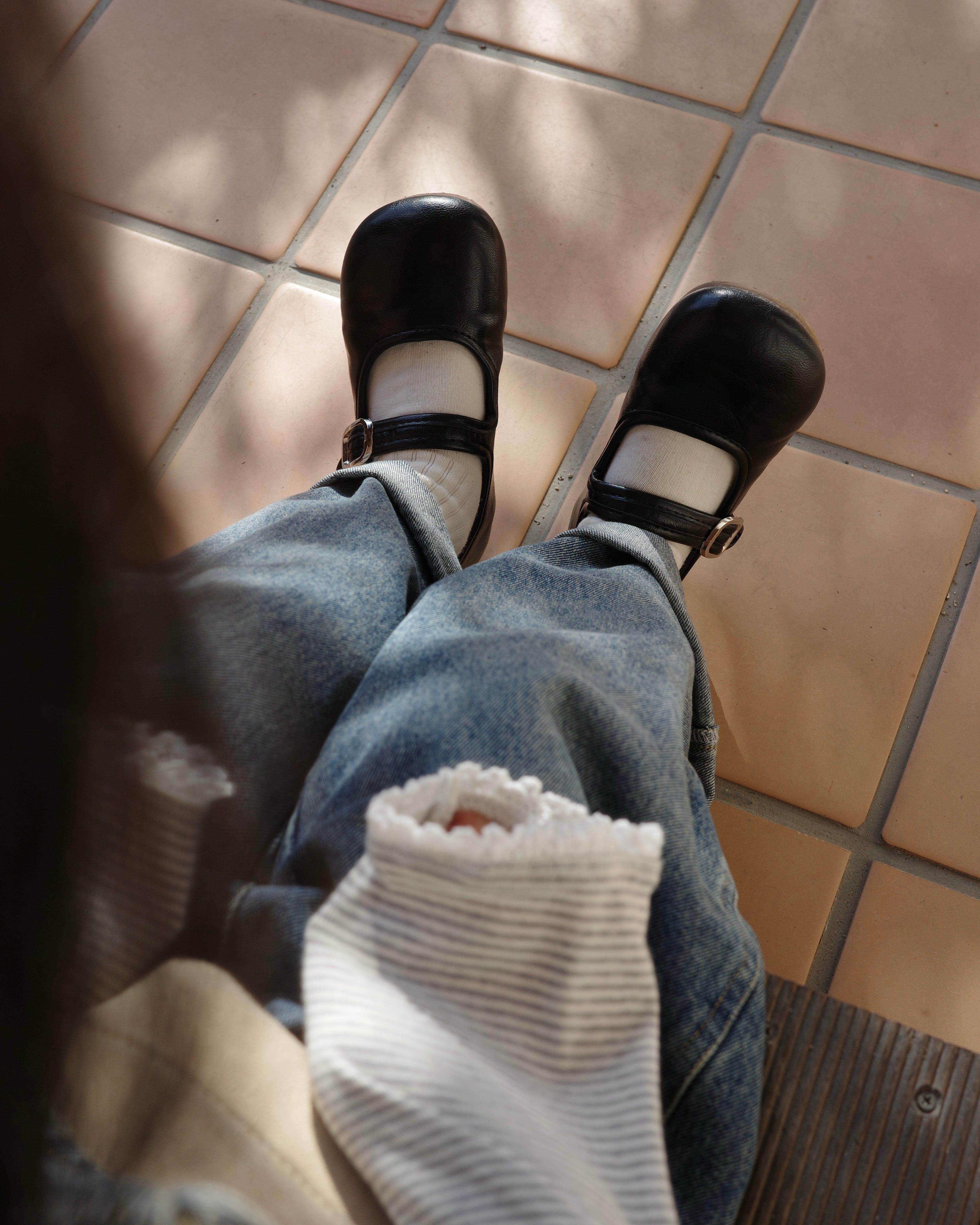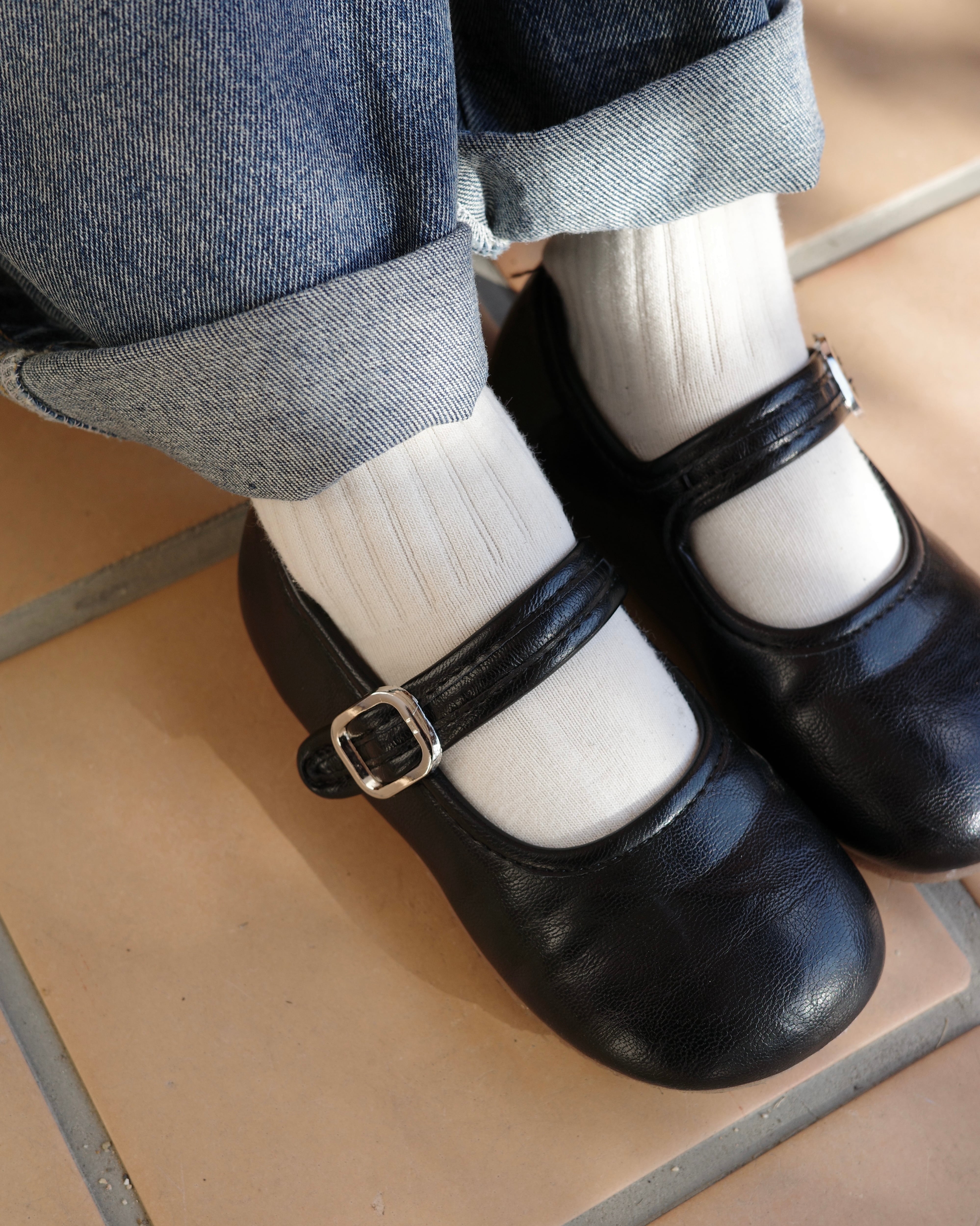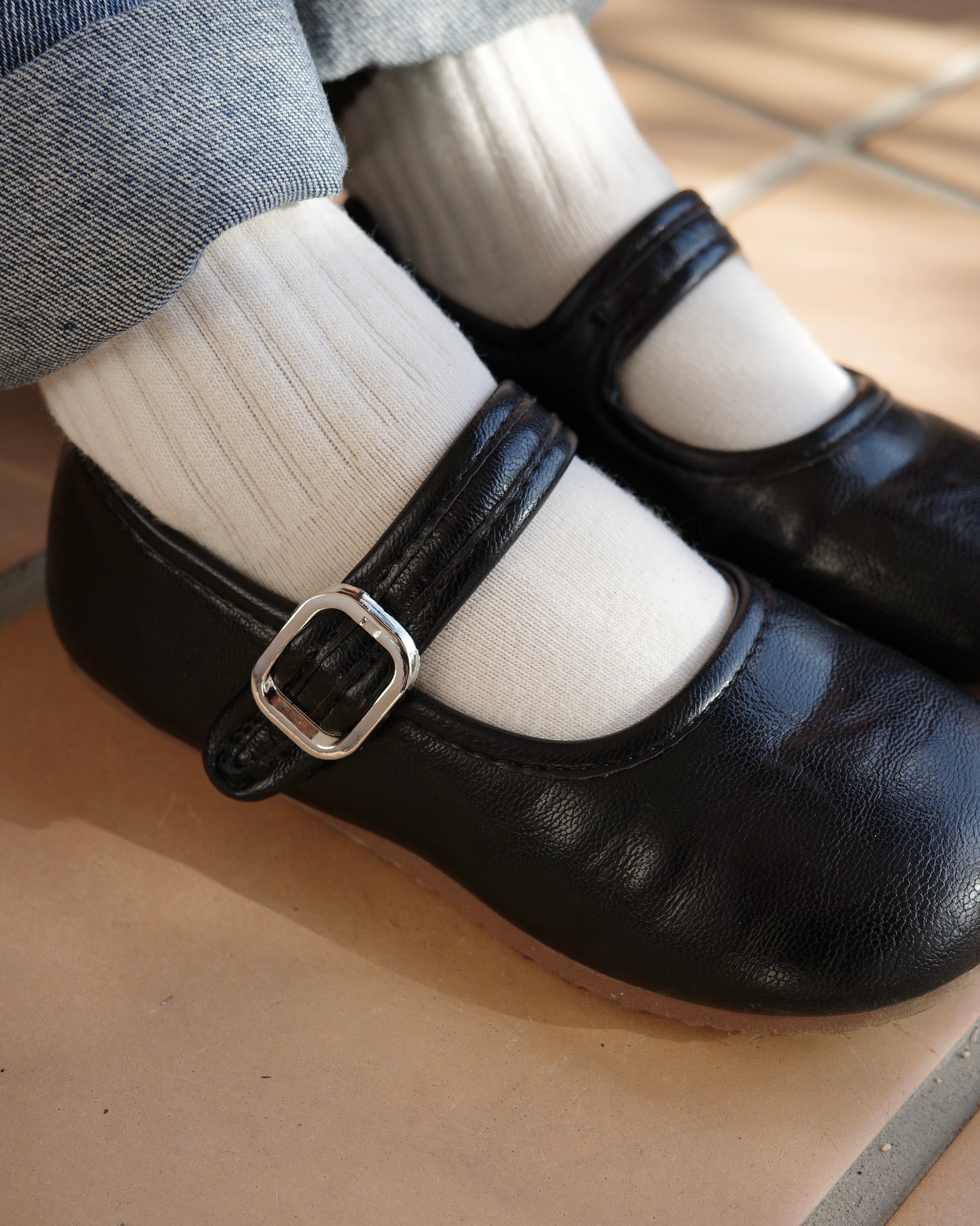 程よい艶感のしなやかなエコレザー素材、足にやさしく馴染む履き心地です。
