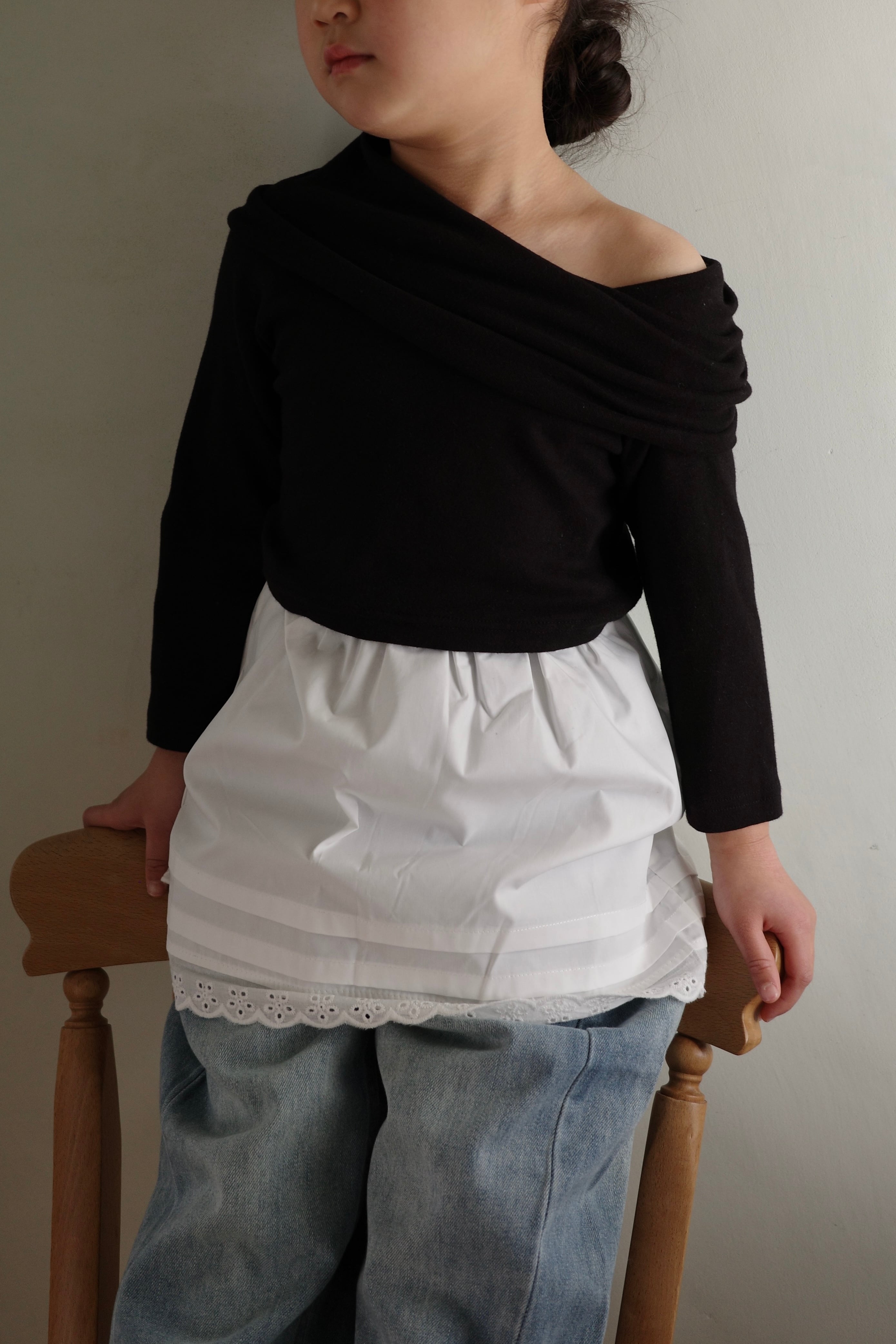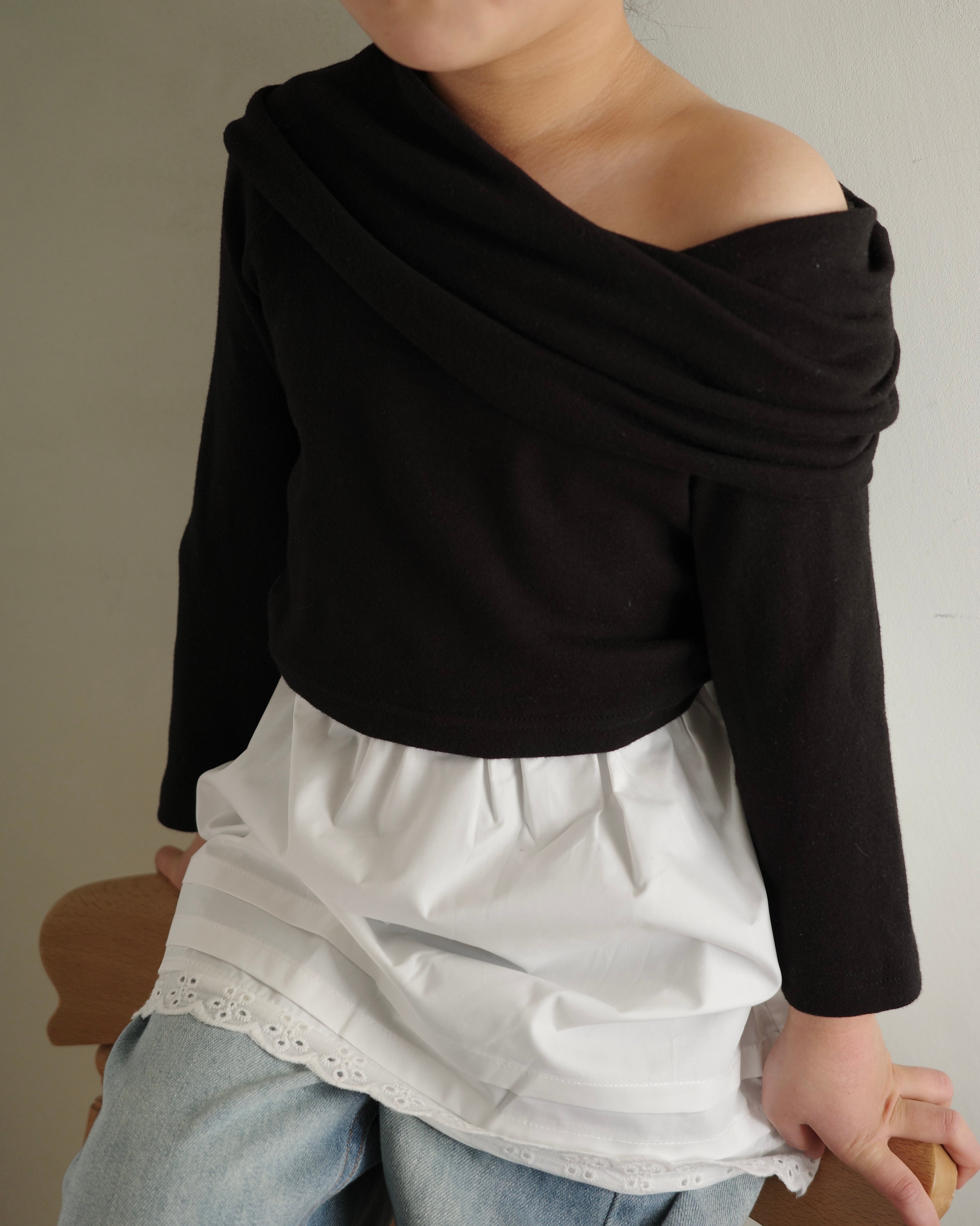 程よく肩をのぞかせるデザインが、ぐっと大人びた印象に。