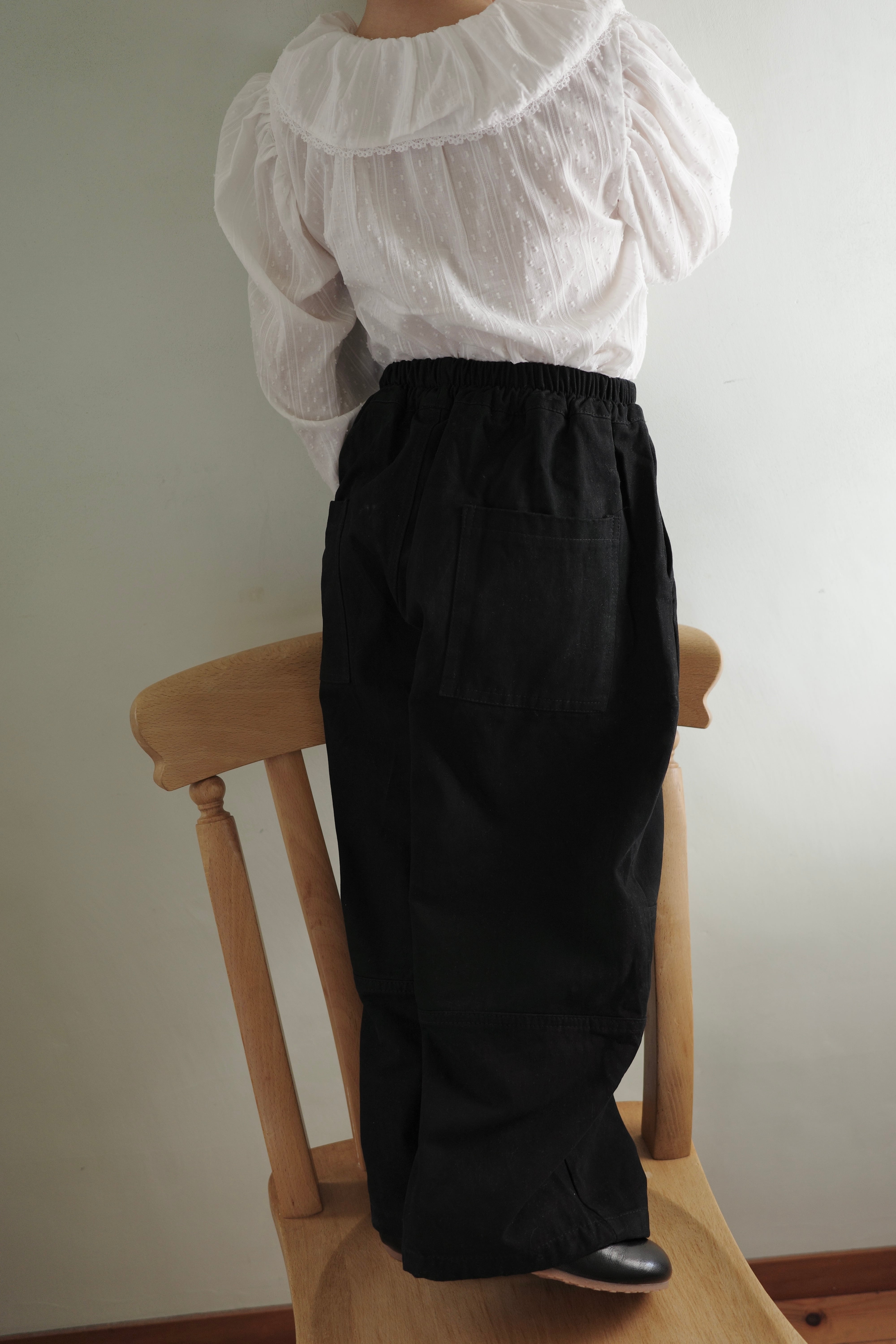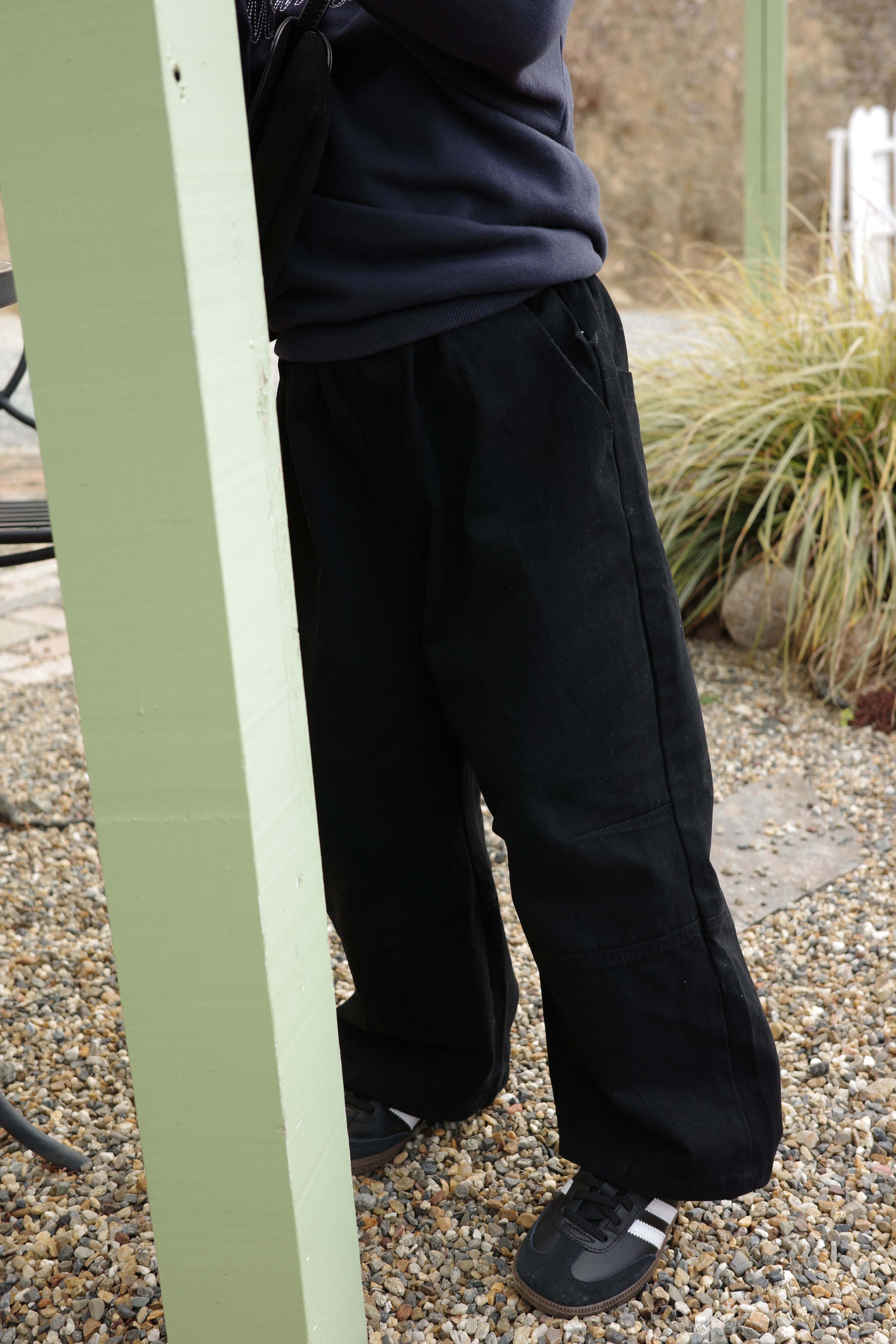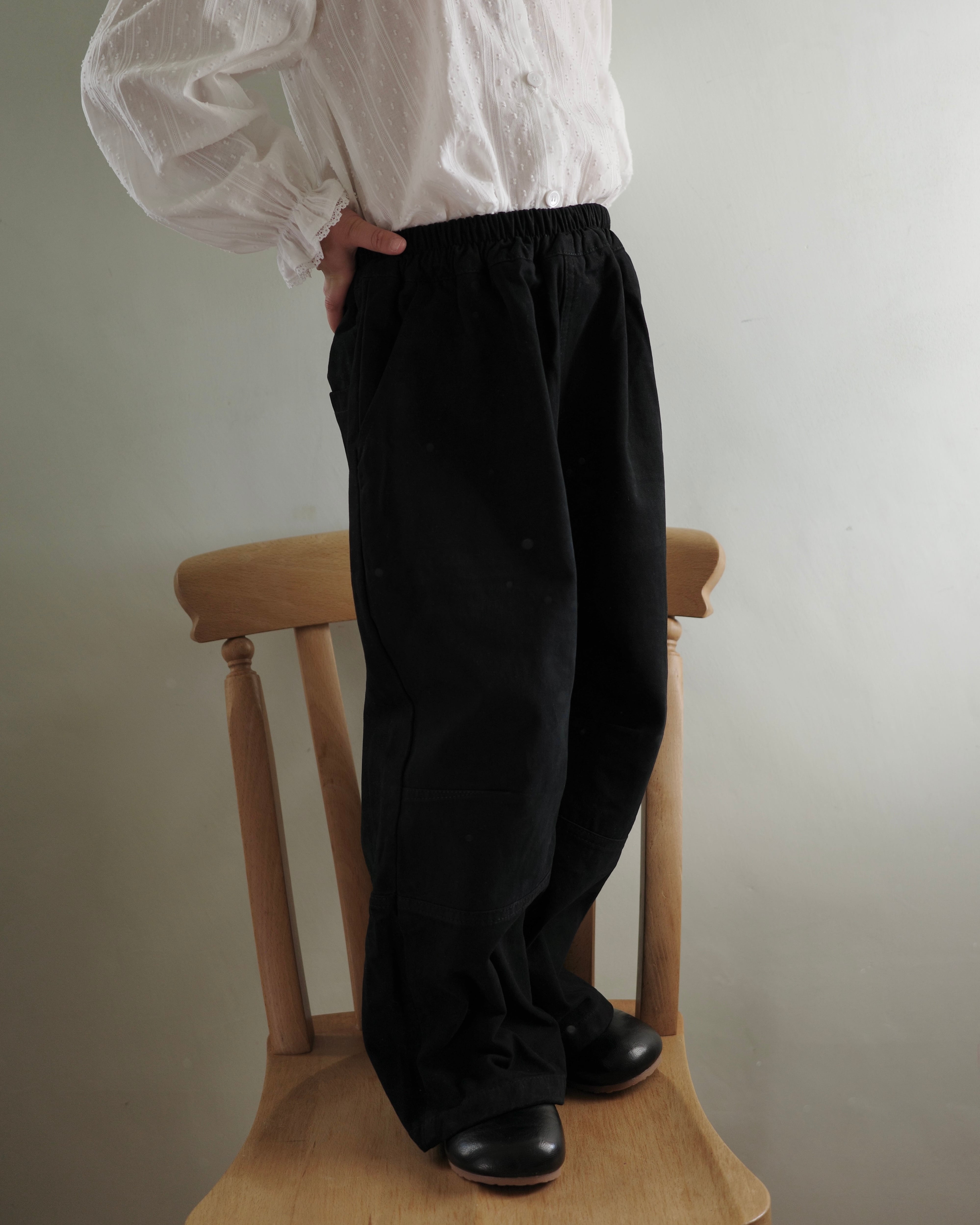 ハイウエスト×フルレングスで脚長シルエット。タックステッチが程よいアクセントに。