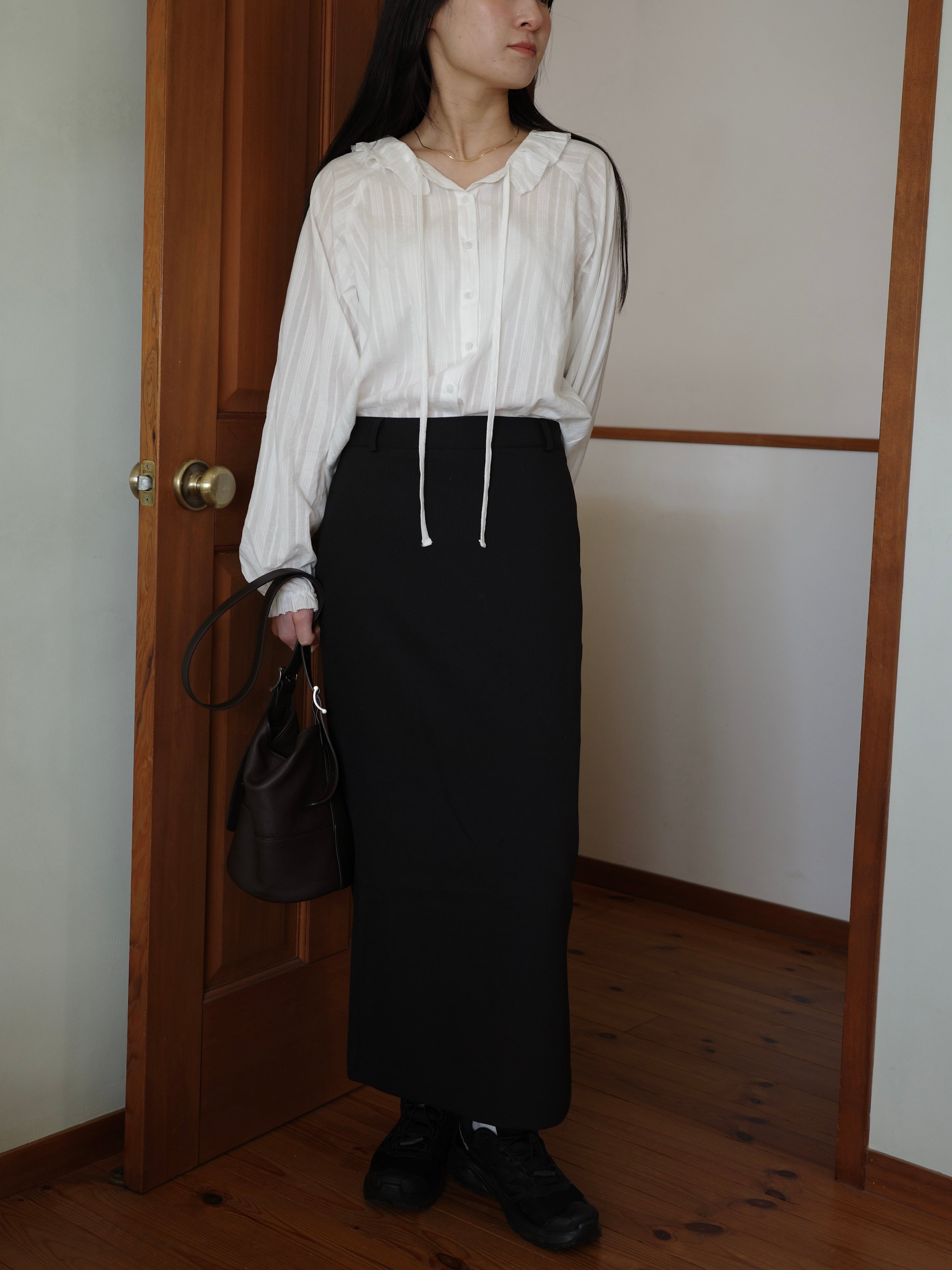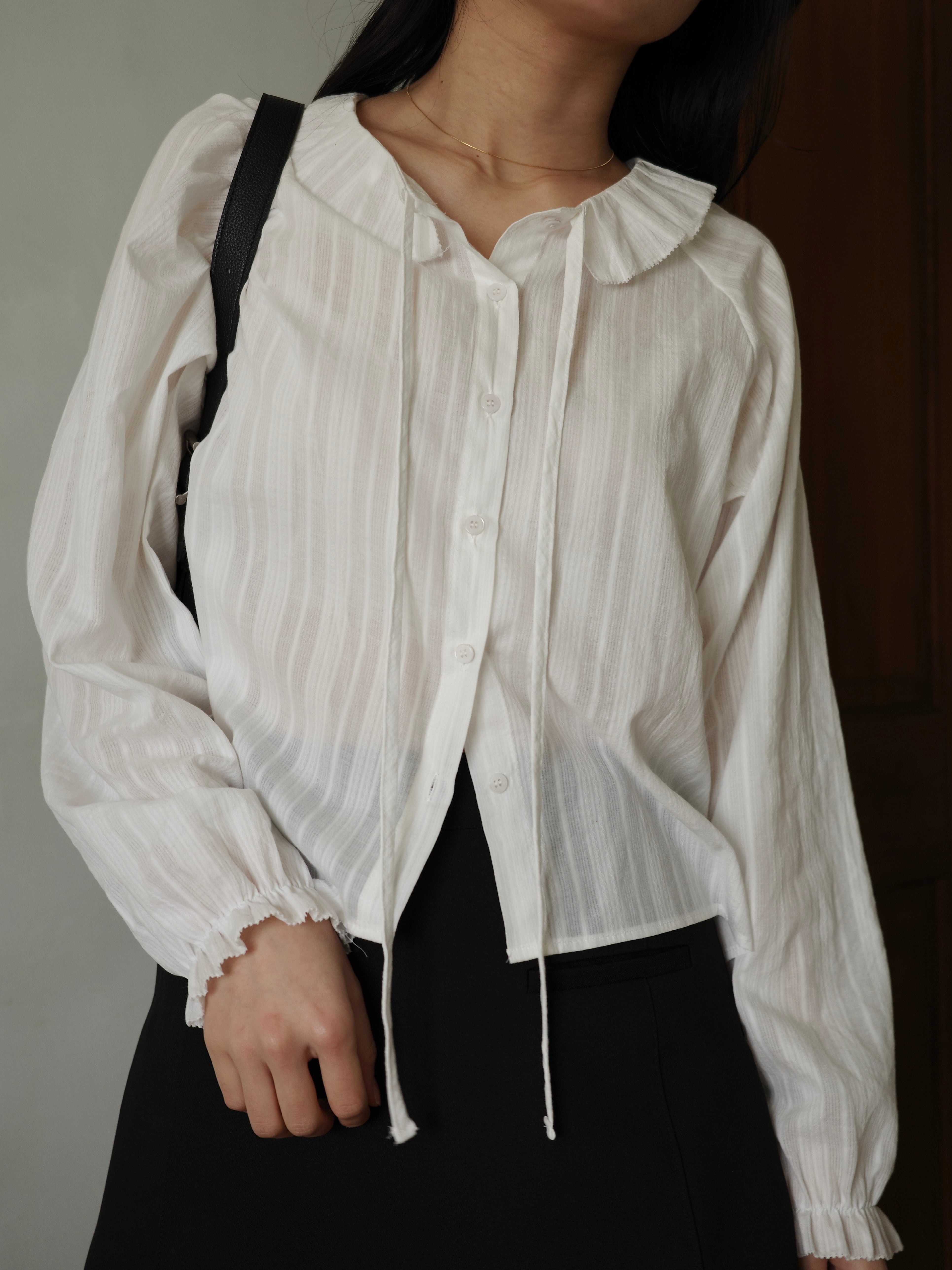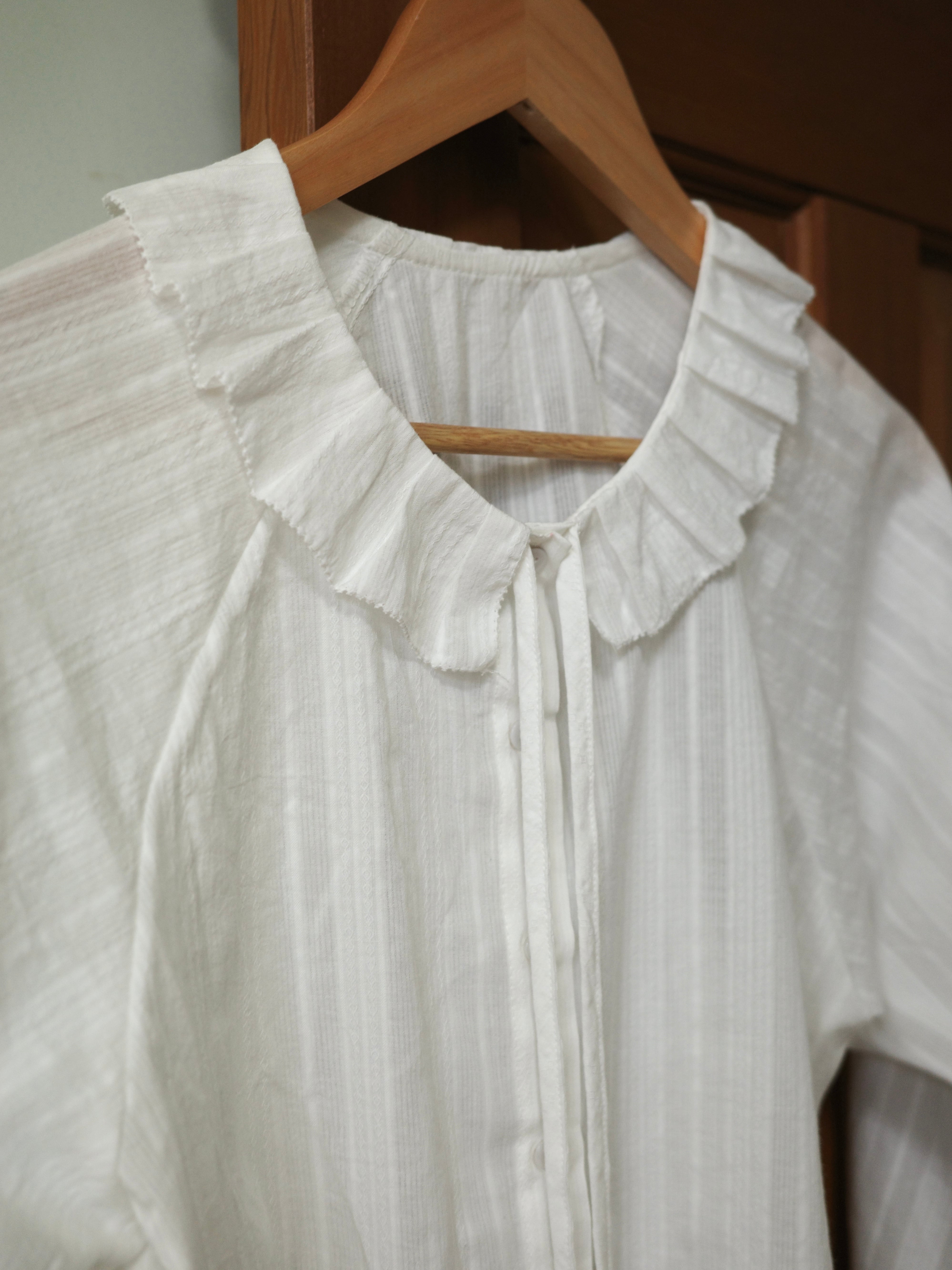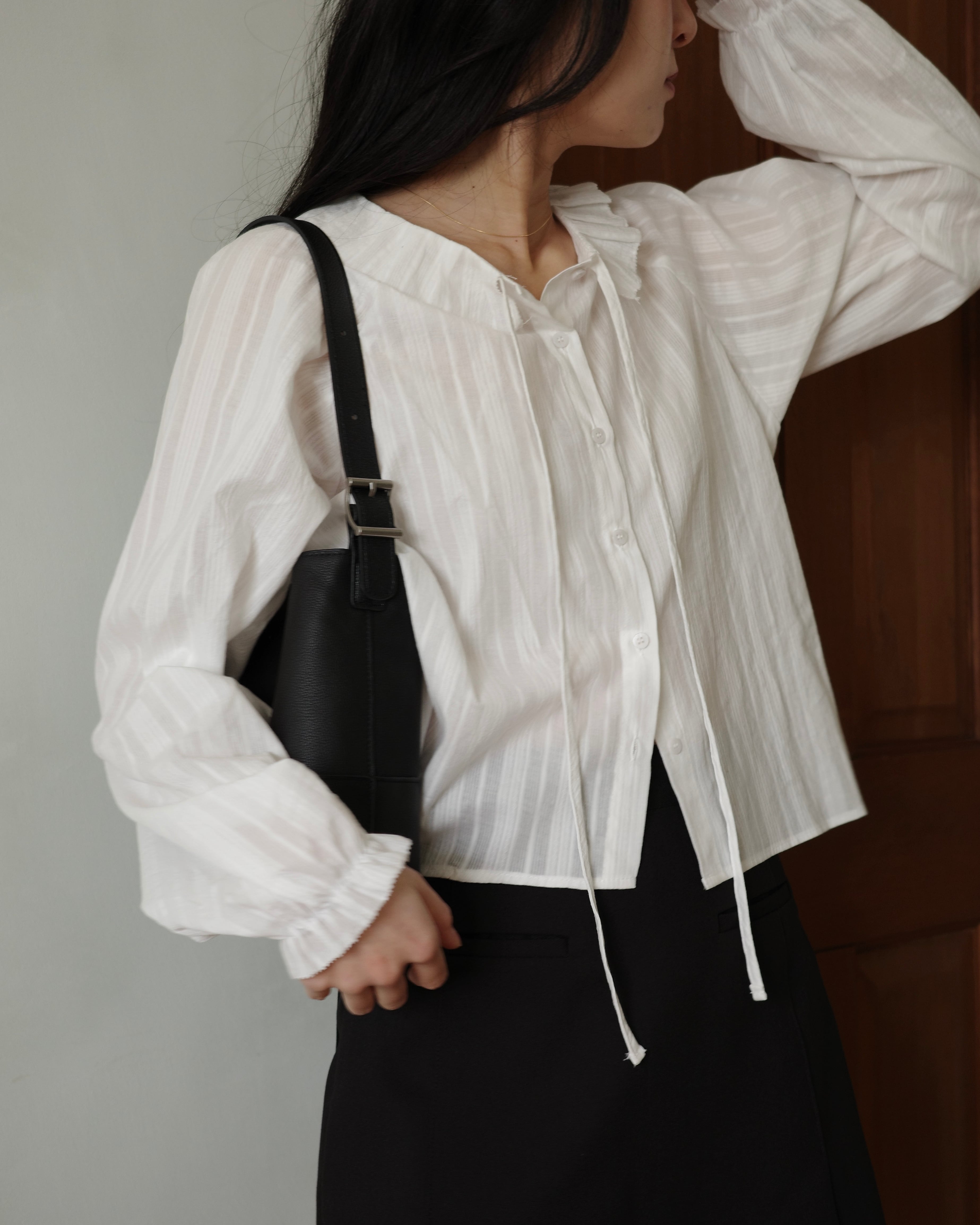 繊細なフリル襟が印象的なブラウス。
