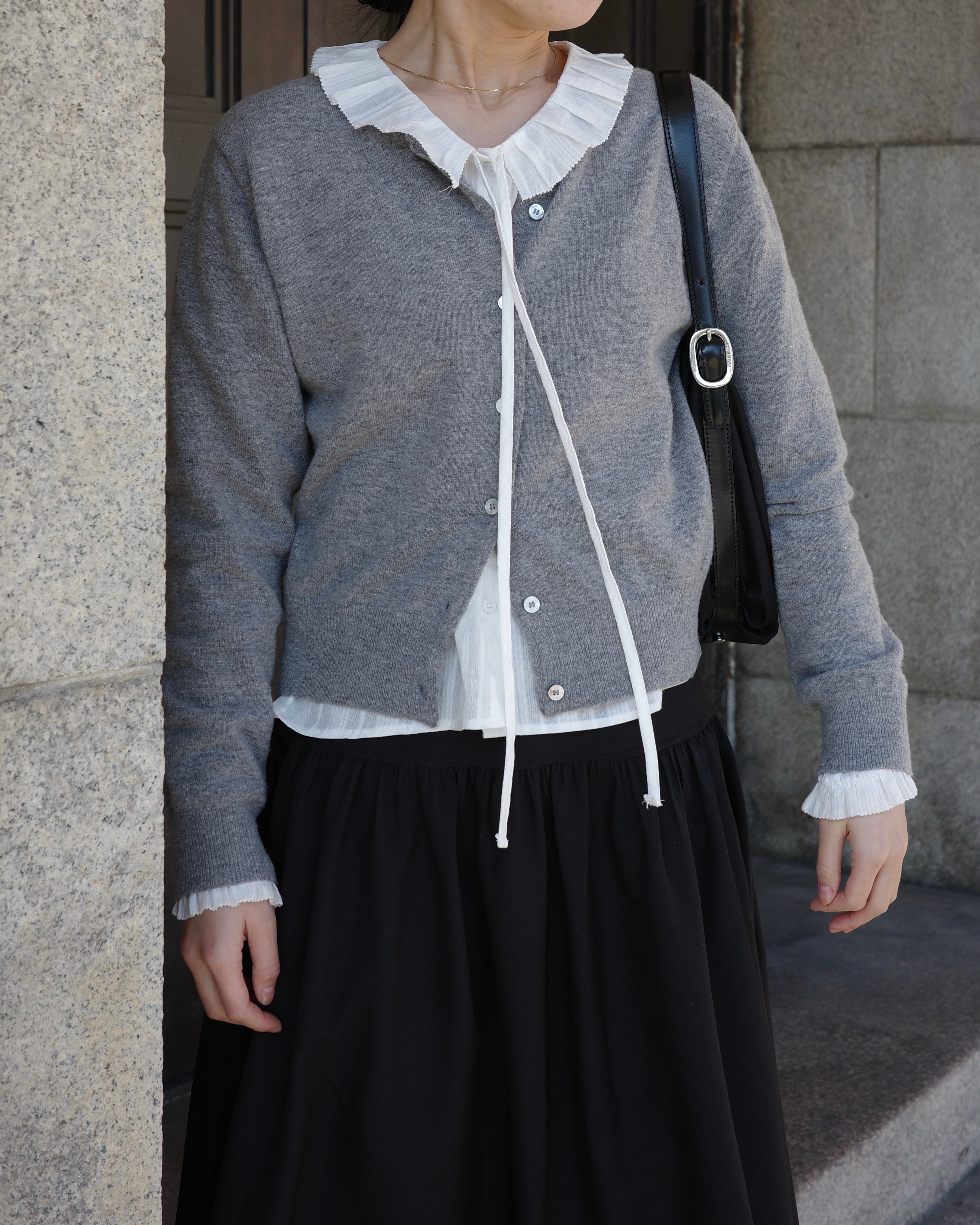カーディガンとの相性も抜群で、