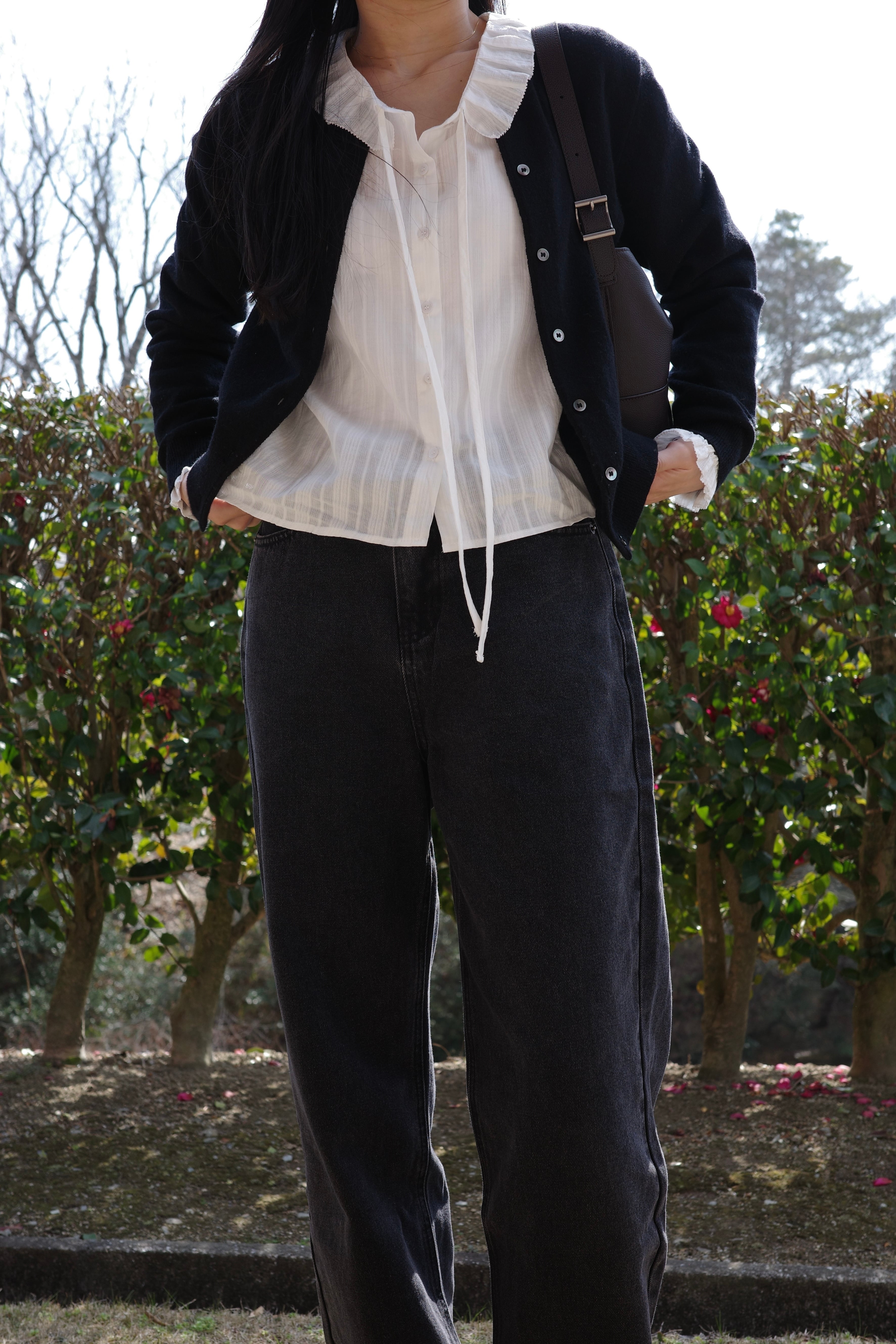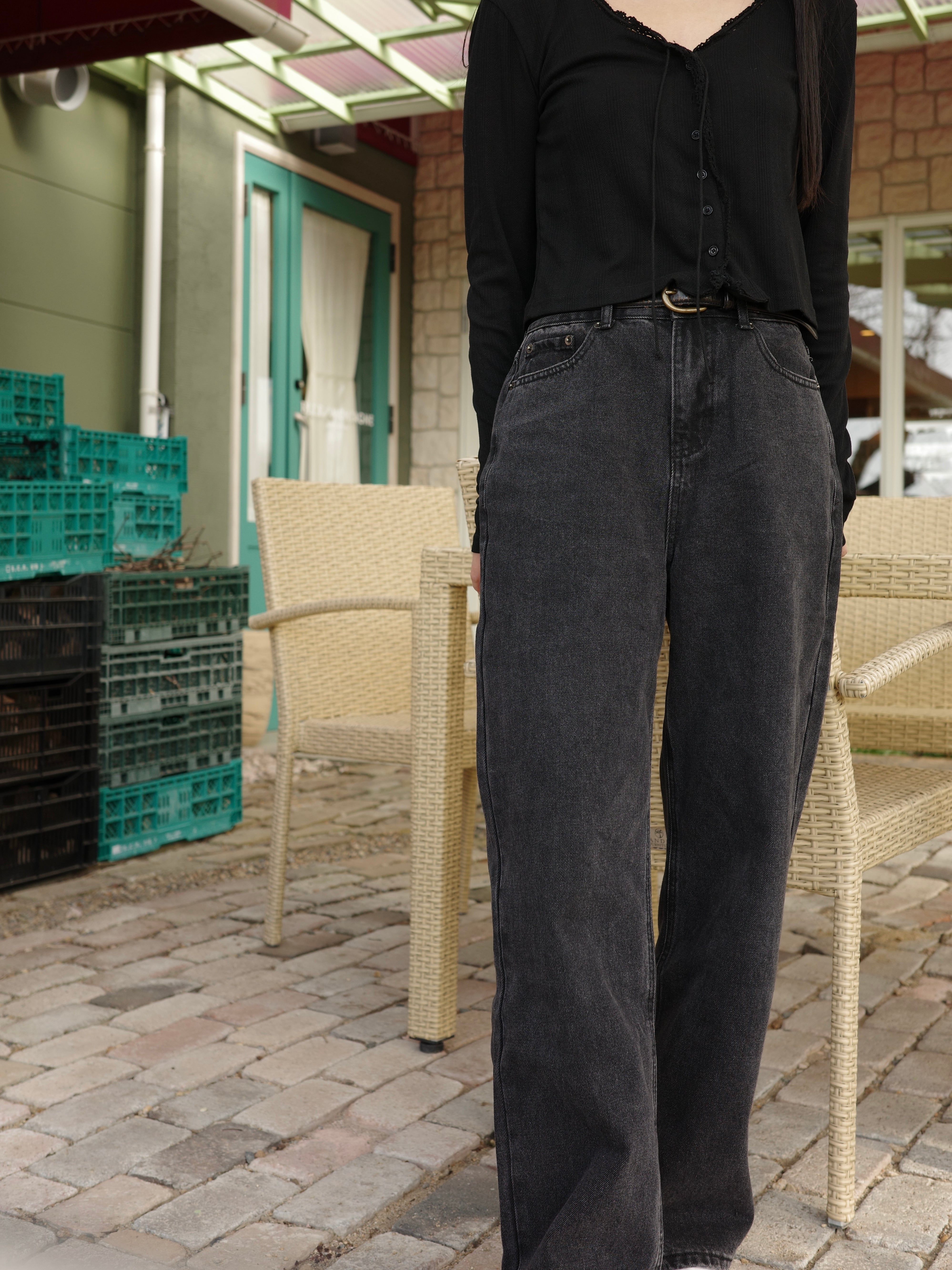 コンパクトなトップスと合わせたメリハリのあるスタイリングもおすすめです。