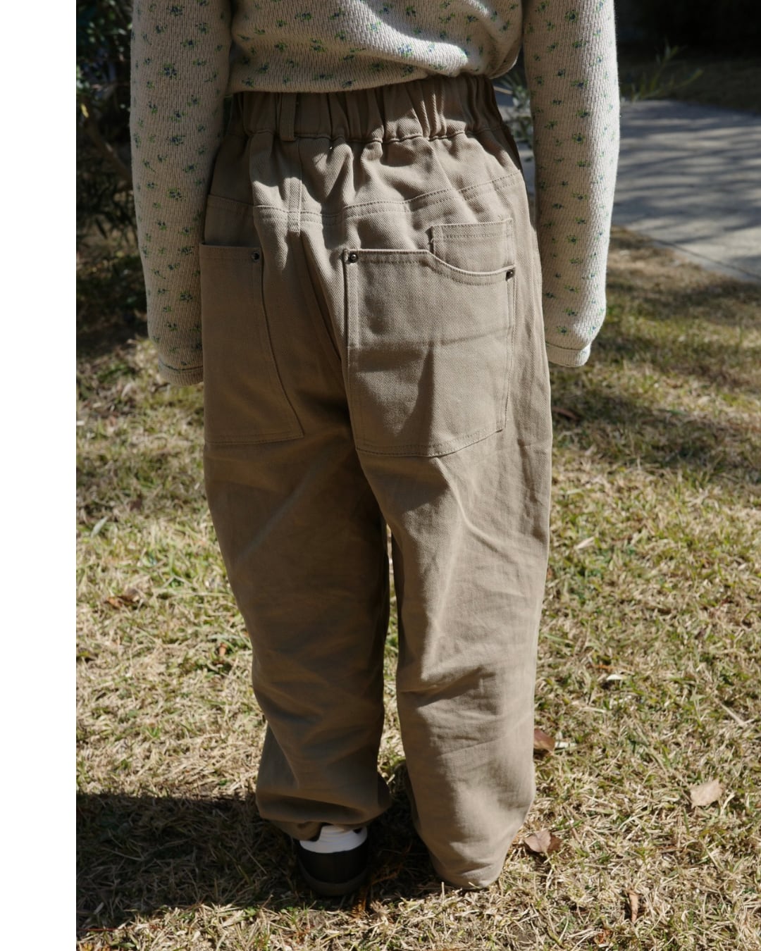 バックポケットのディテールもポイント。後ろ姿まで抜かりなく、コーディネートにさりげない個性をプラスします。
