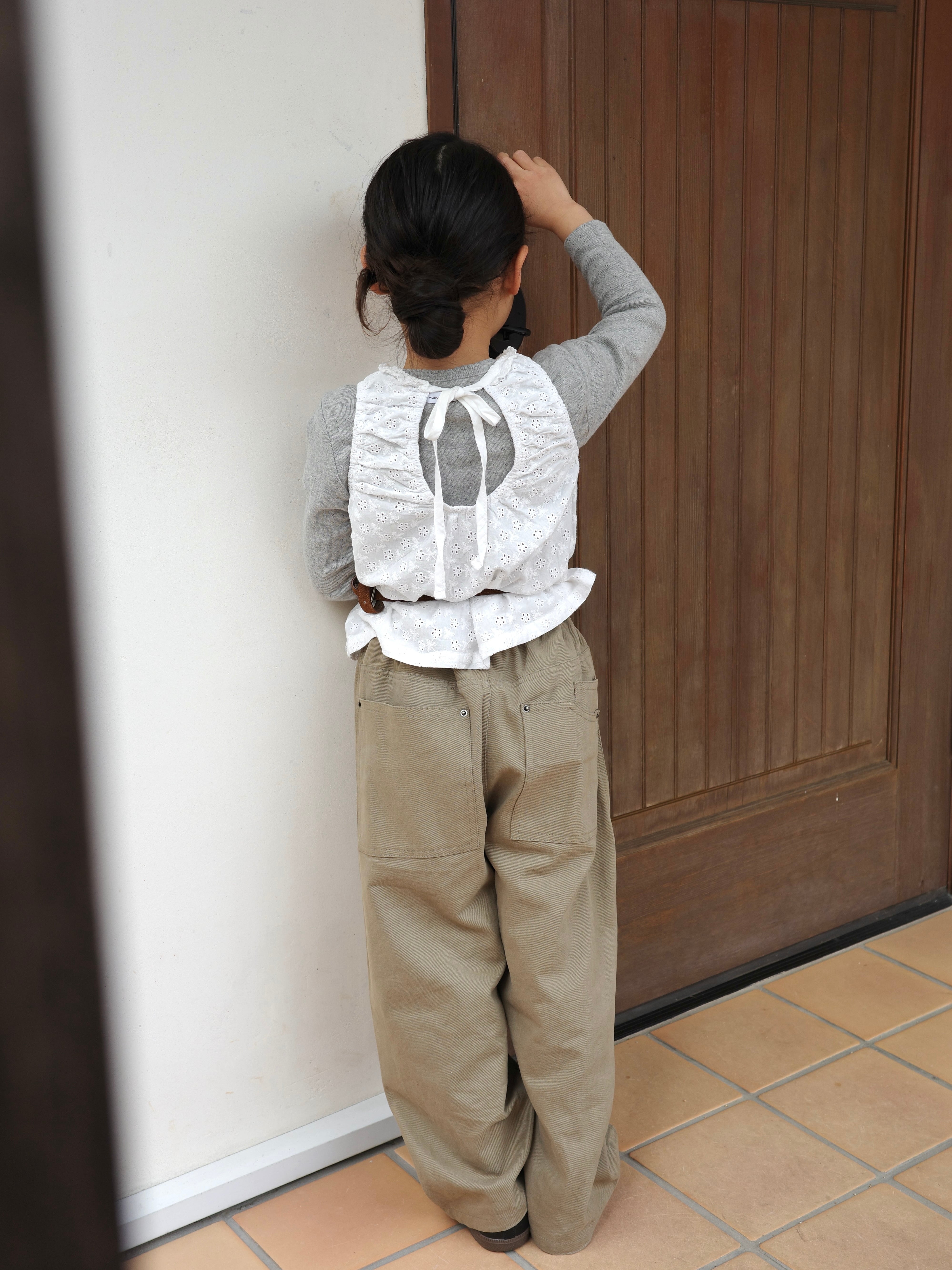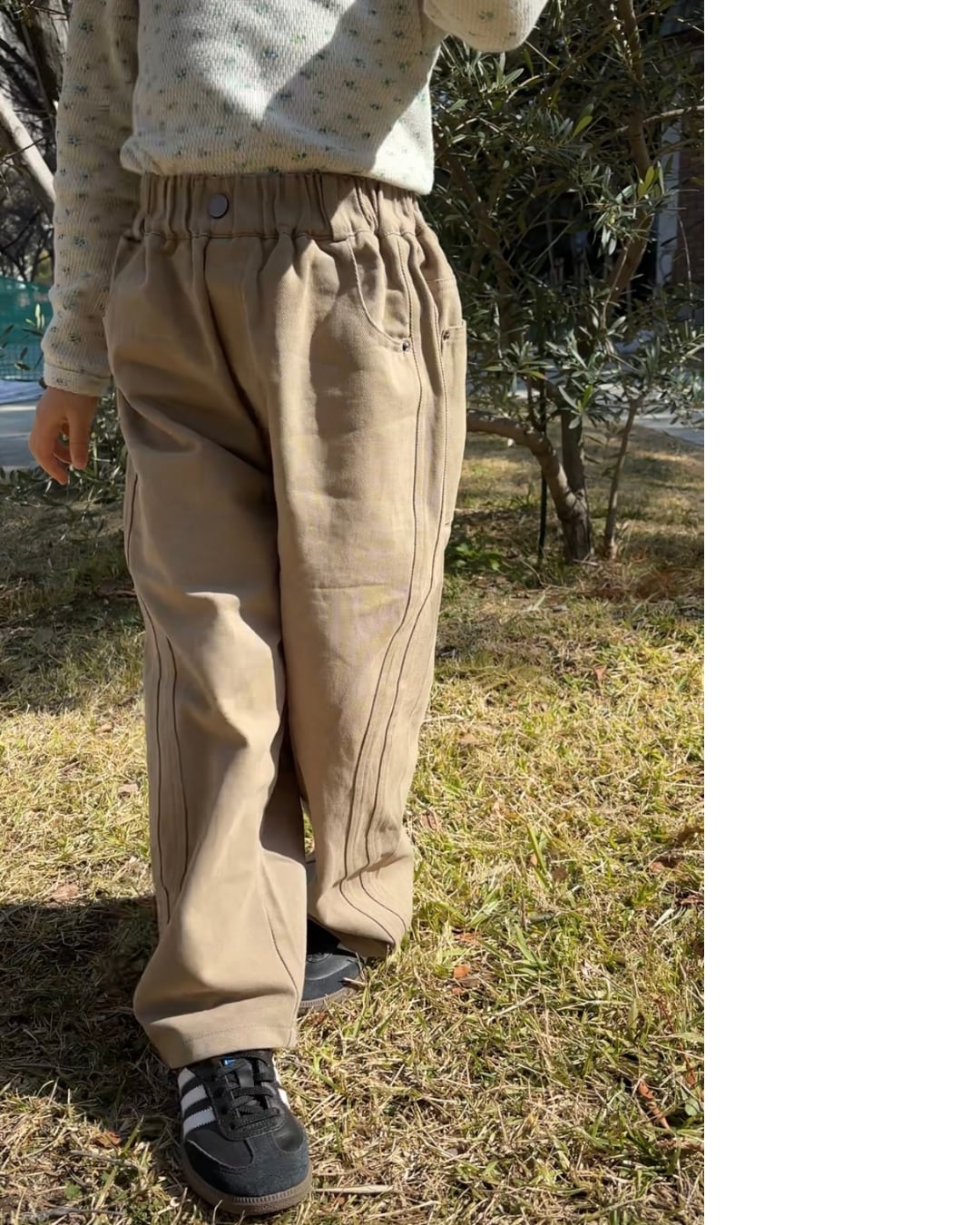 ベージュとカーキの中間のような綺麗な発色です。(写真では少し明るく写っています)