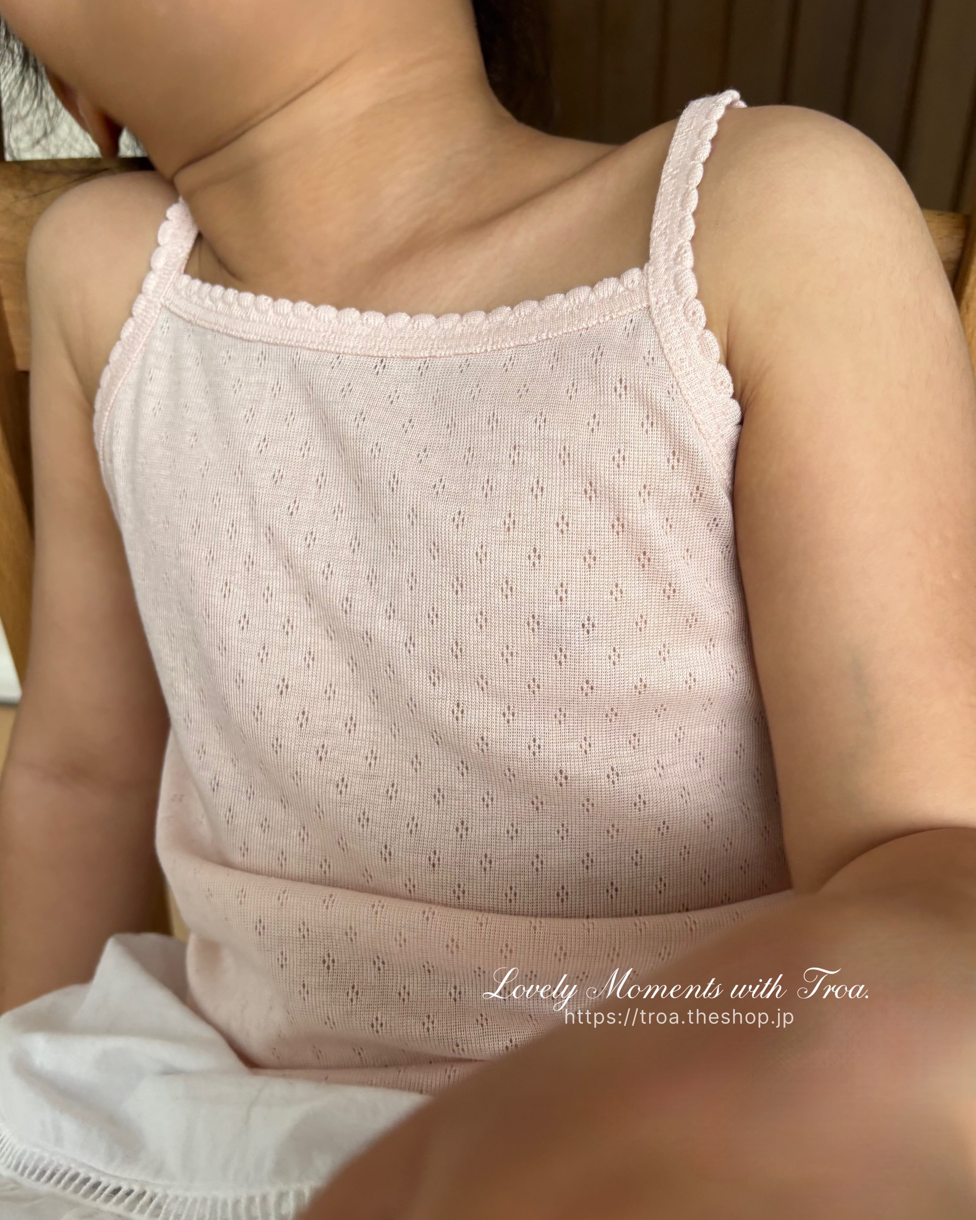 キャミソールはディテールまで可愛く仕上げられており、肌見せトップスのインナーとしても◎