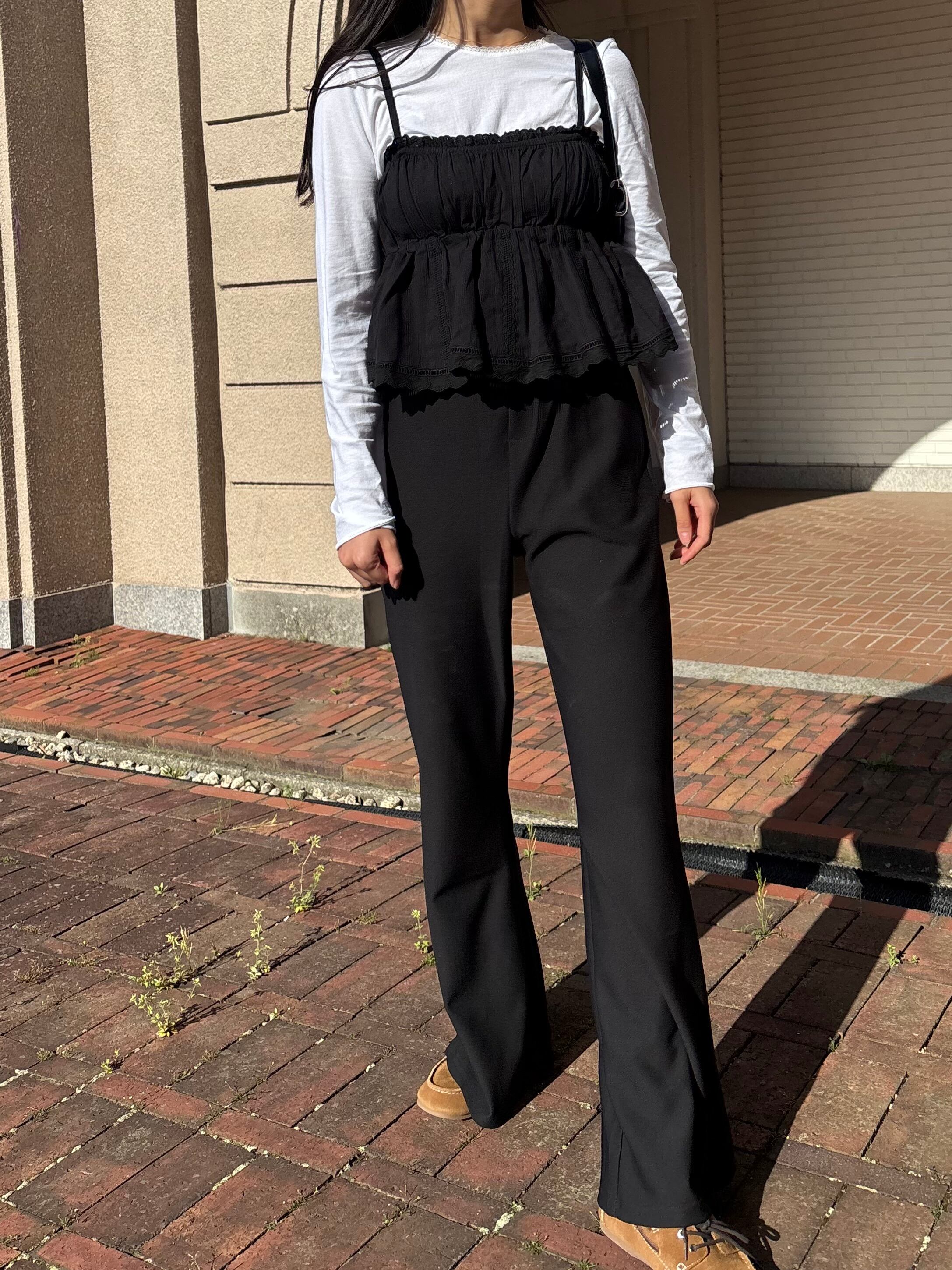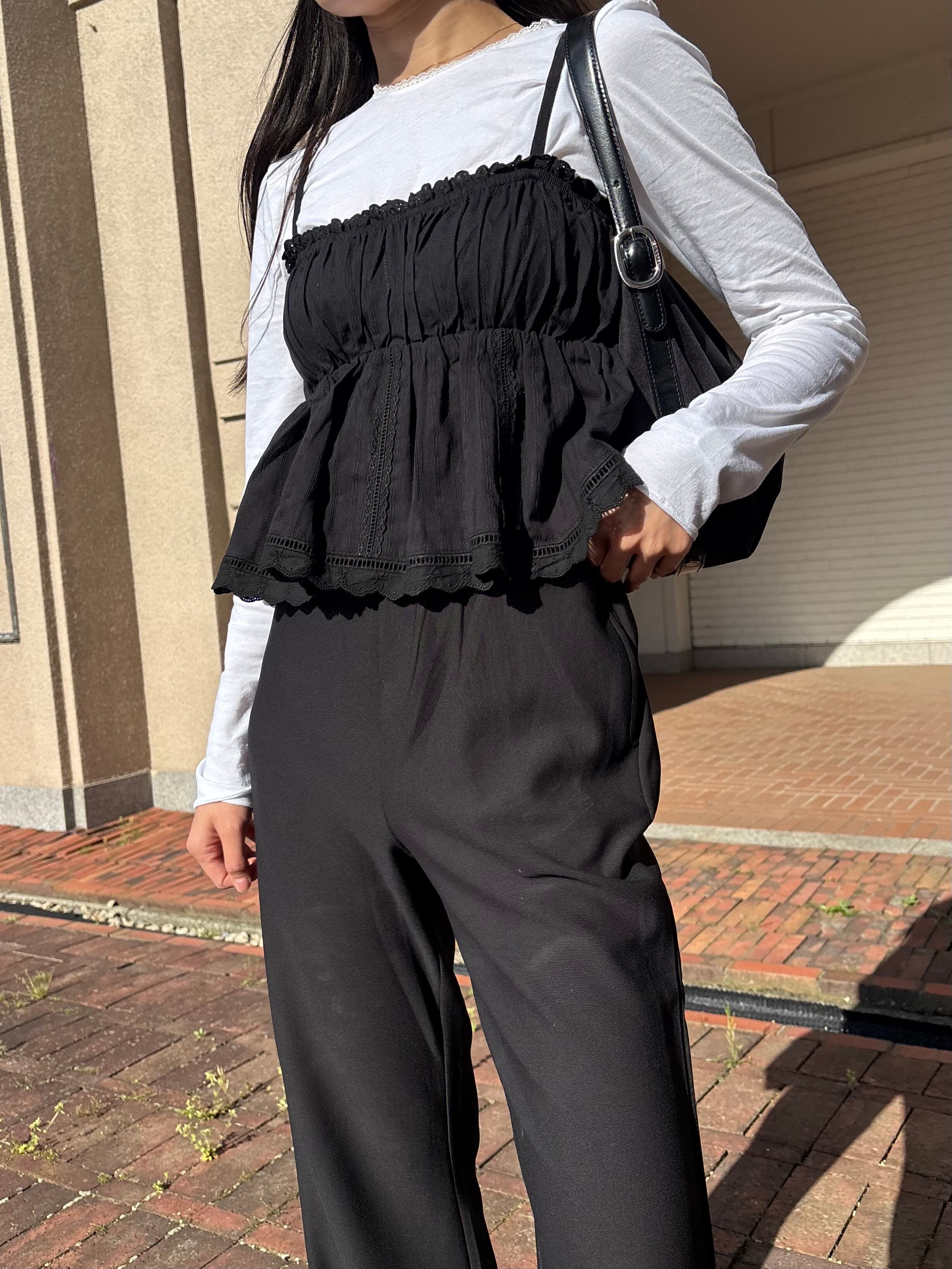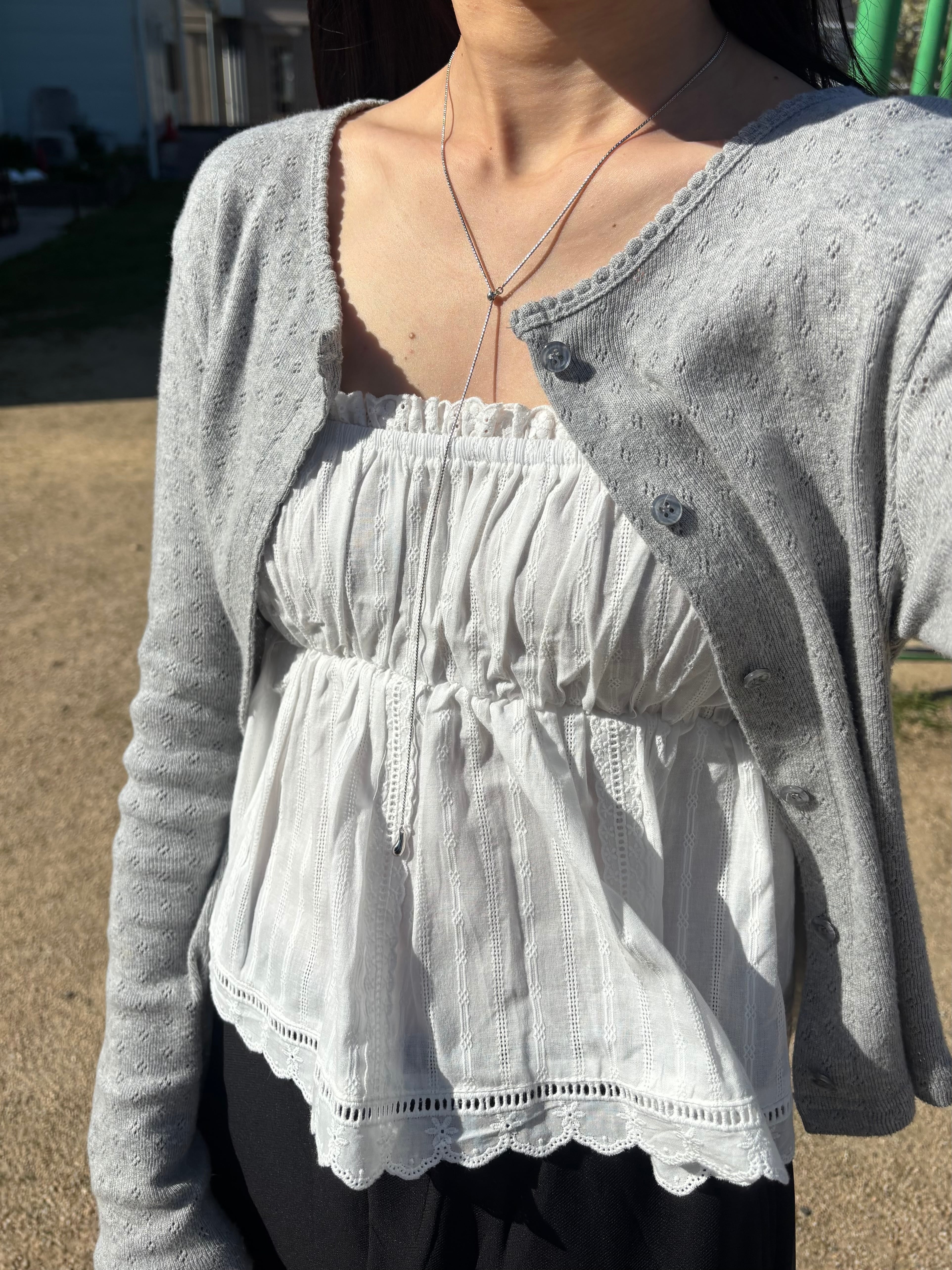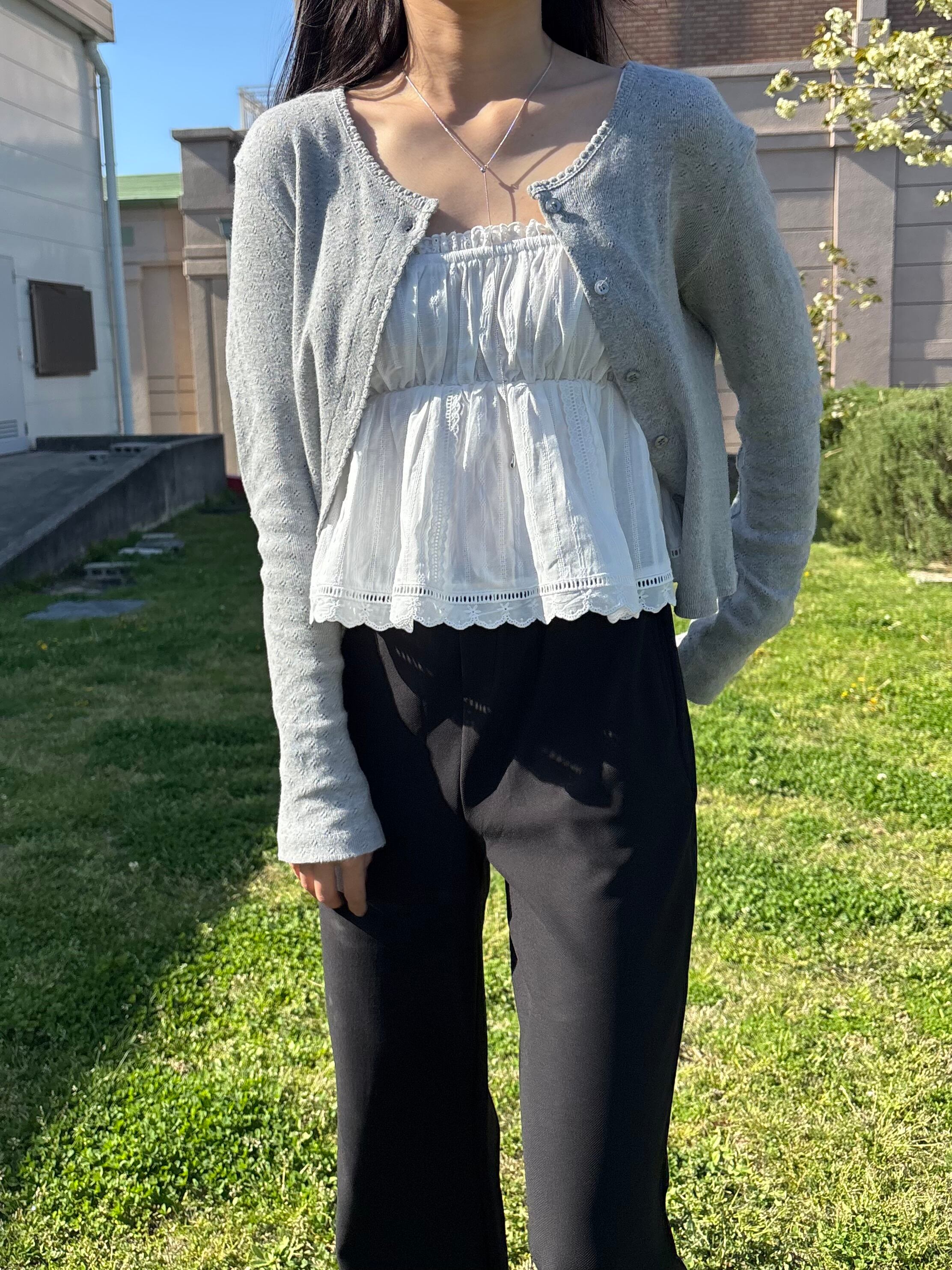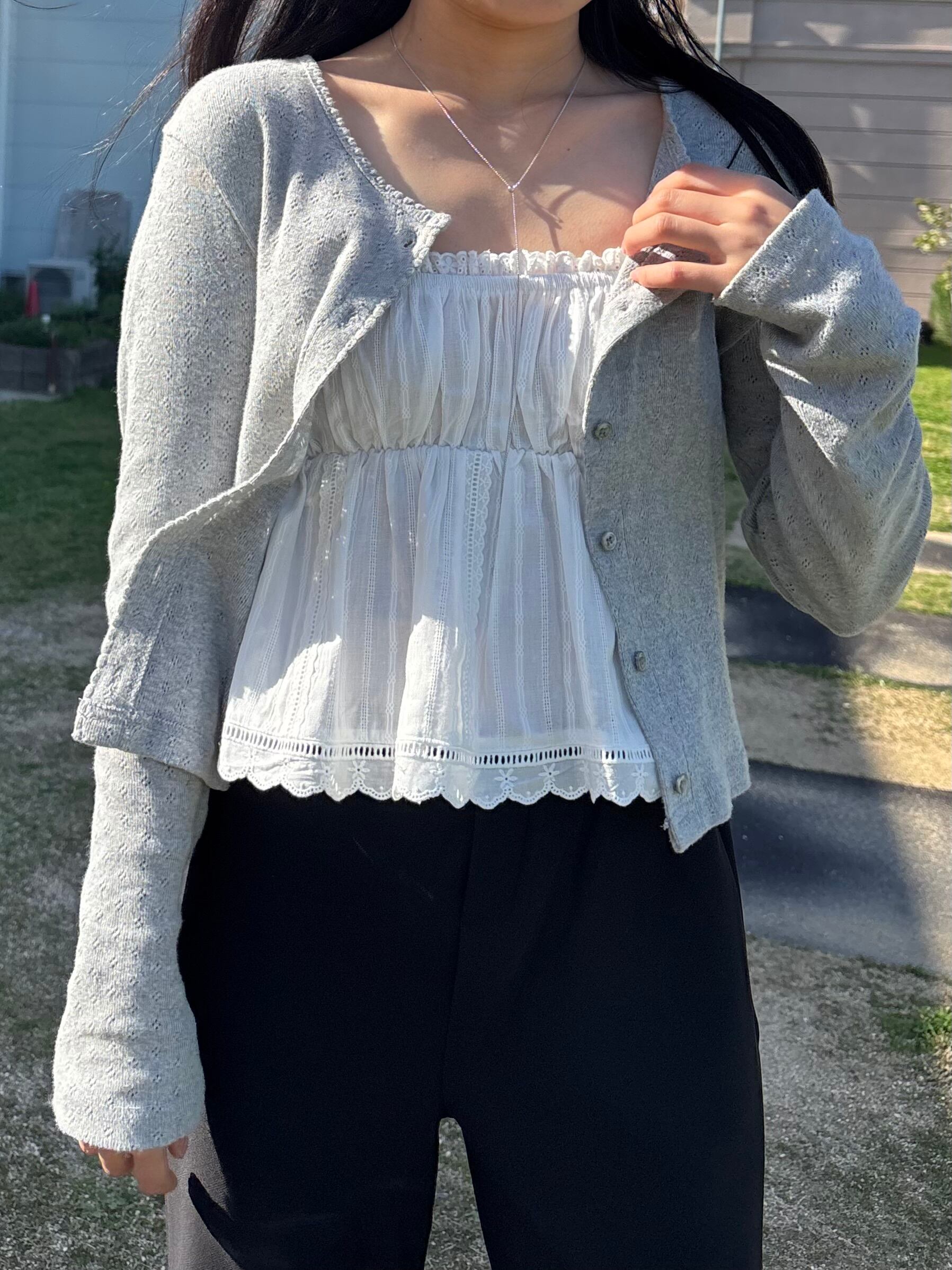 カーディガンやシアートップスとレイヤードするだけで、春夏らしい軽やかなスタイリングに。