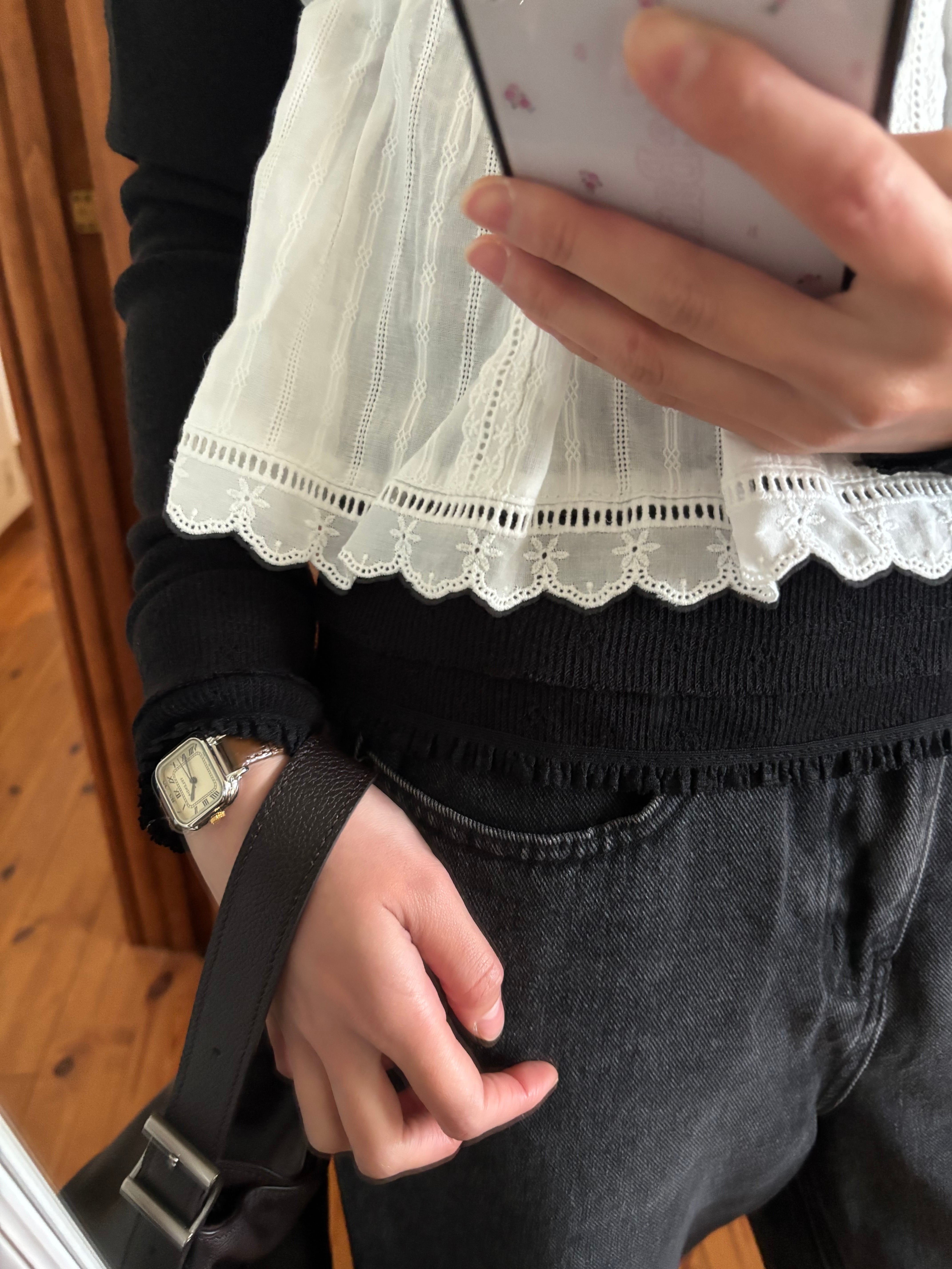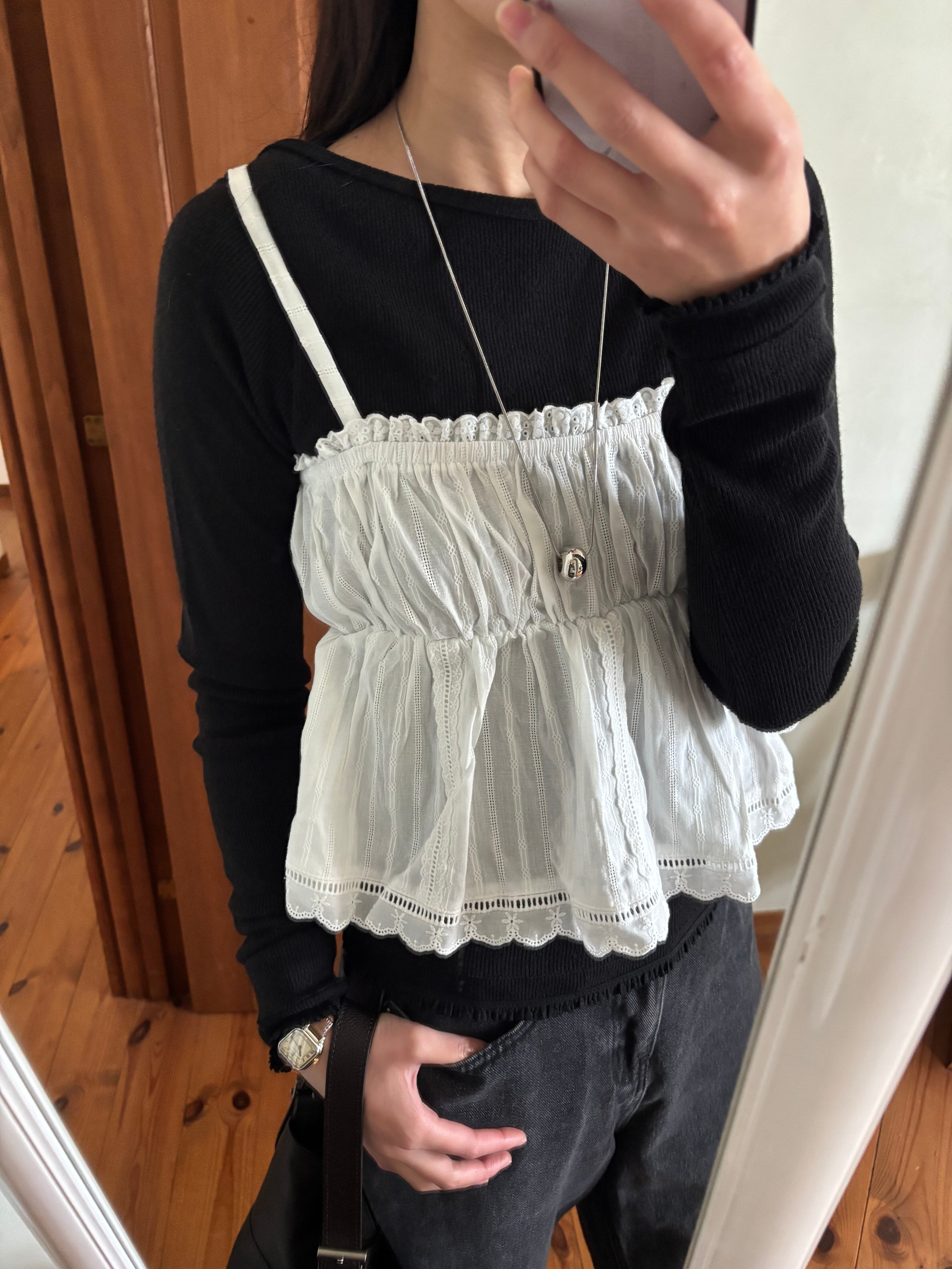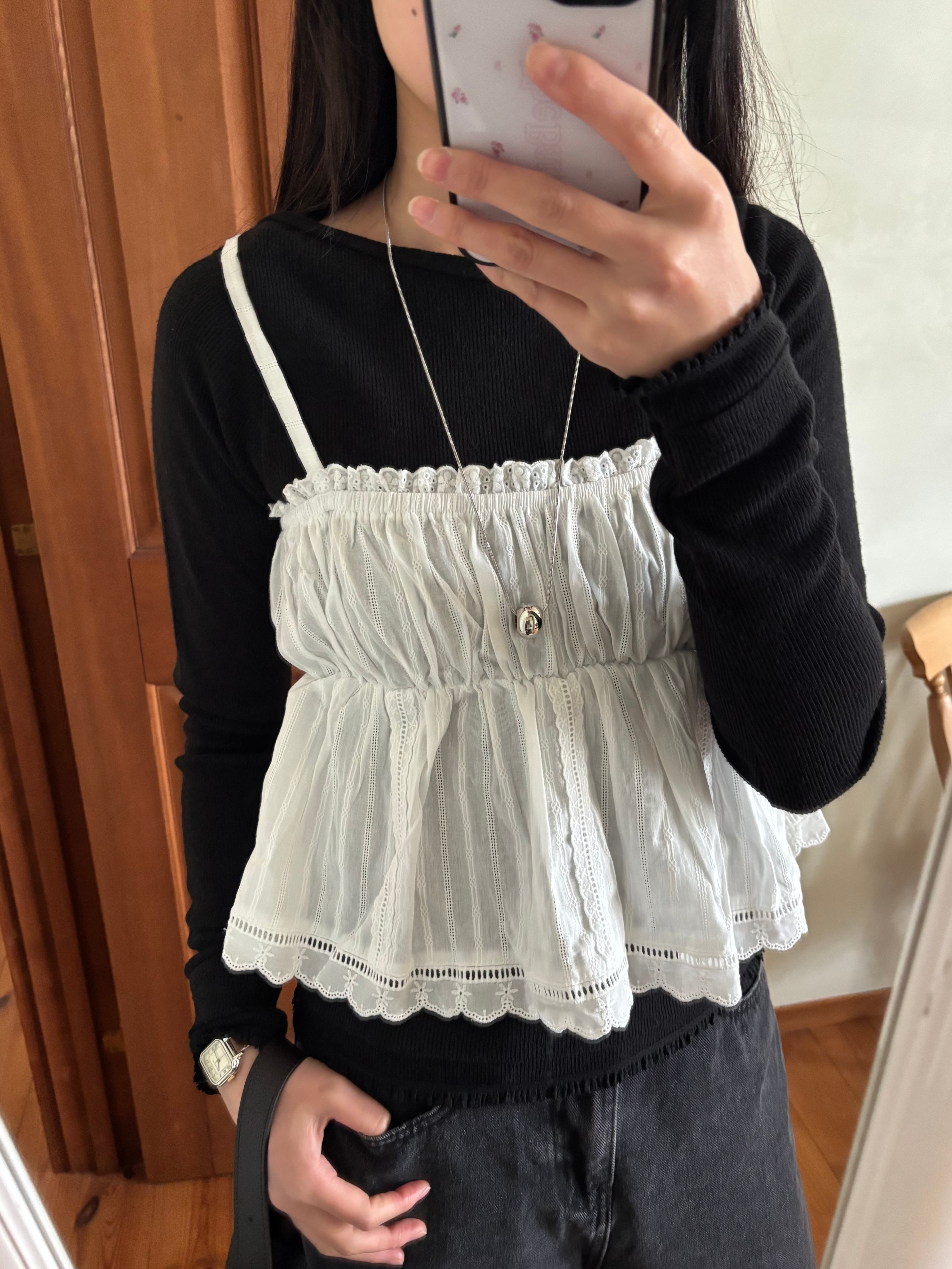 ふんわりと広がるシルエットが可愛い、コットンレースビスチェ。