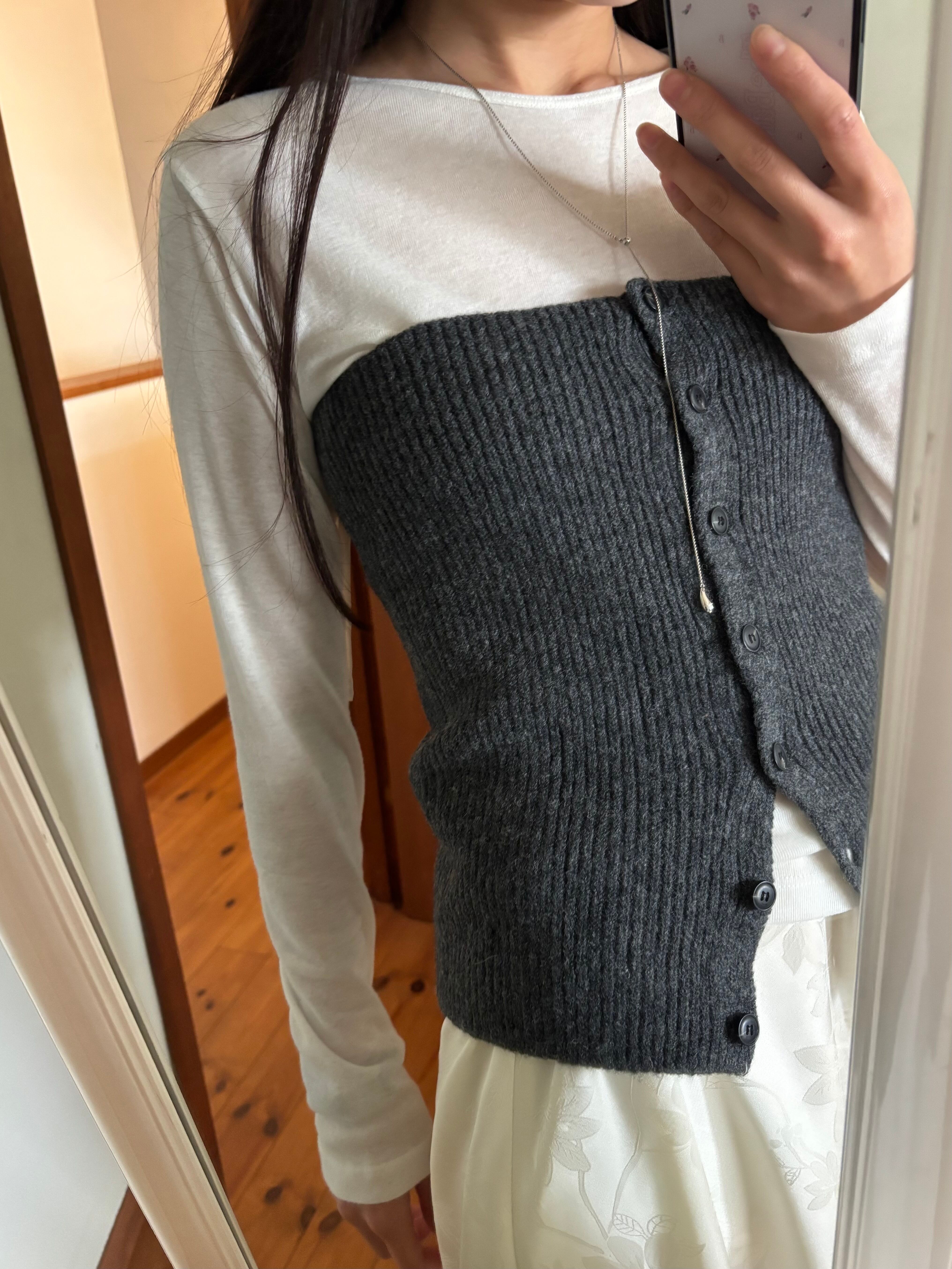 トップスのネックラインやコーデに合わせて、自由にバランスを変えられるのも魅力です。