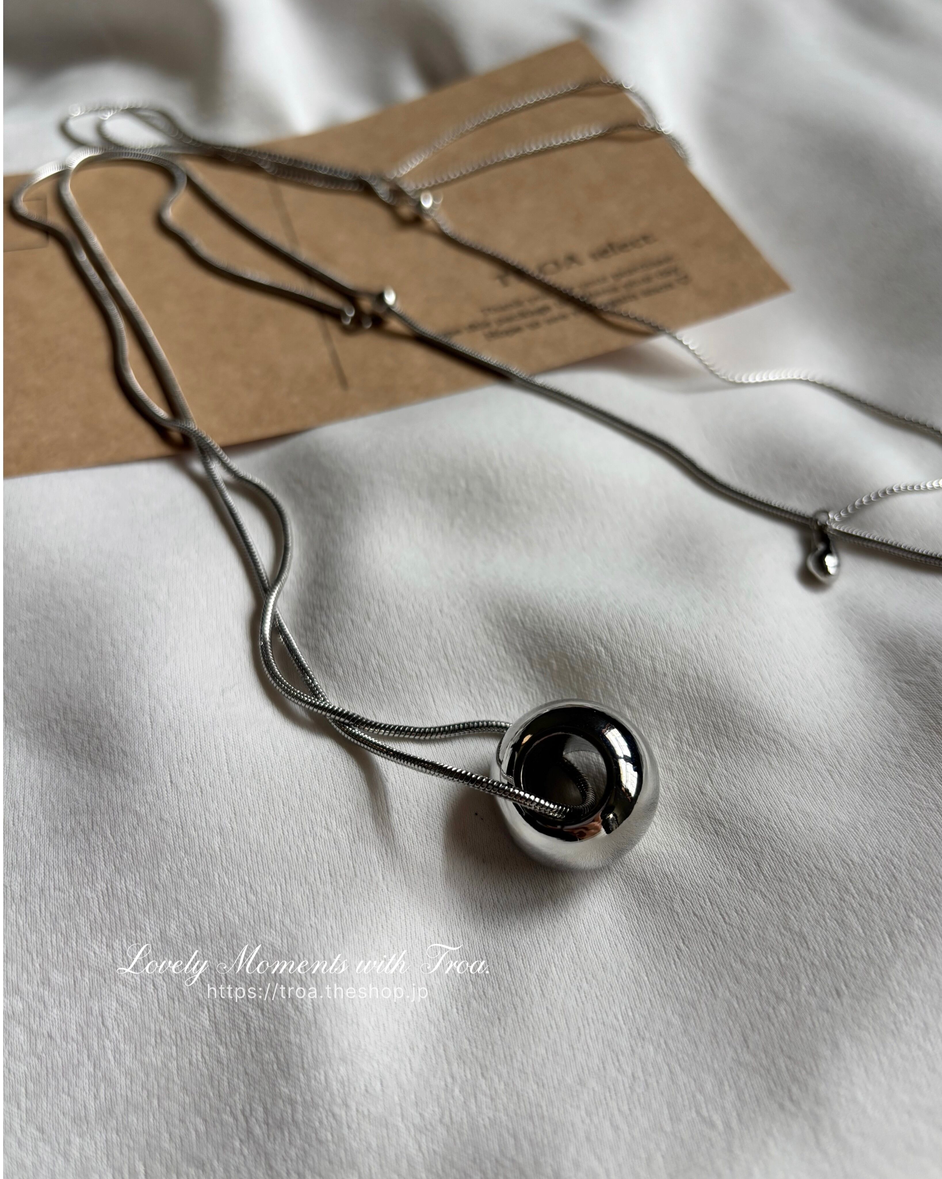 スネークチェーン仕様で首元にすっと馴染み、上品な艶感を演出します。
