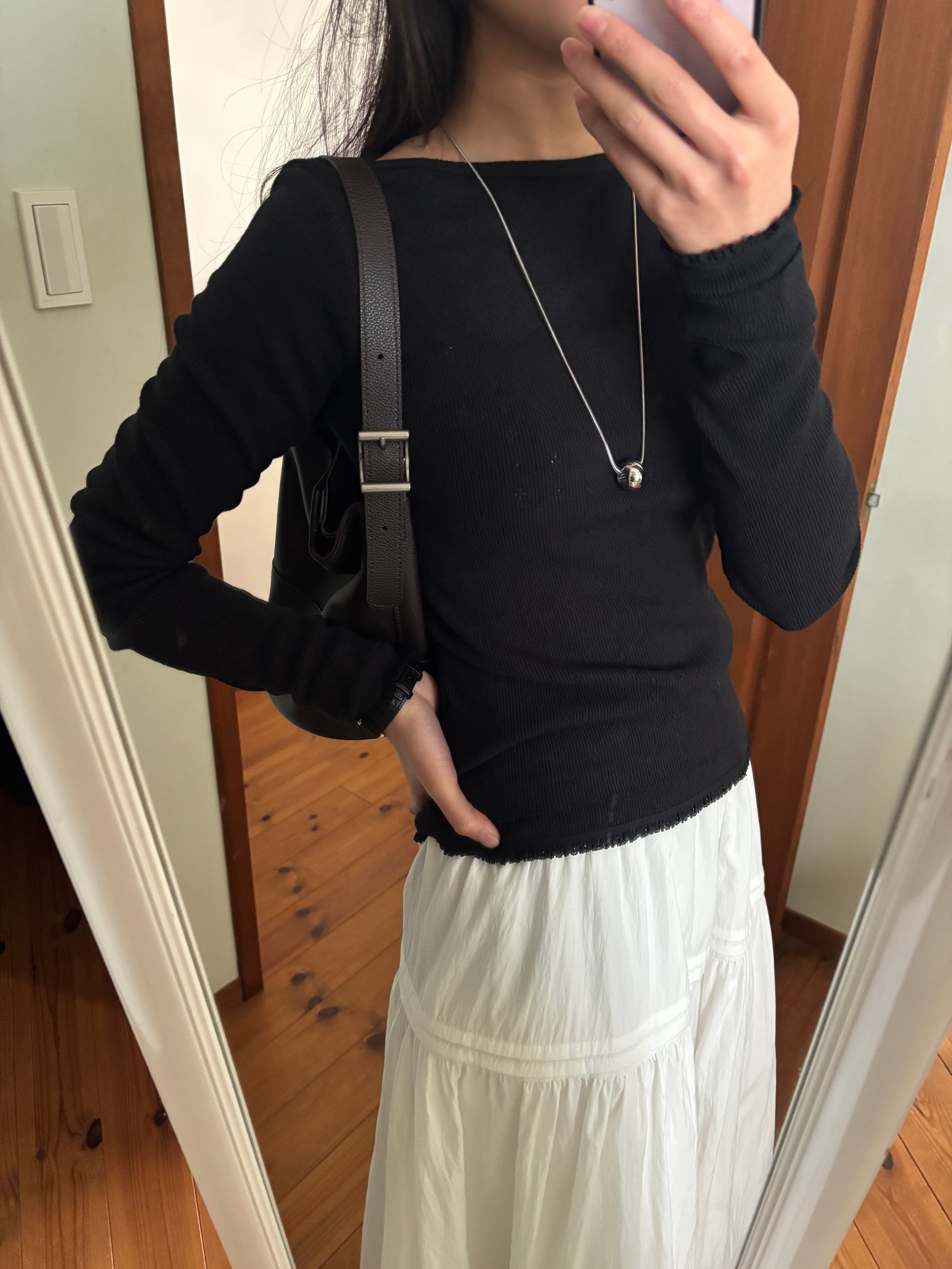 シンプルながら存在感があり、Tシャツやワンピースなど軽やかなコーデにプラスするだけで一気にこなれた印象に。