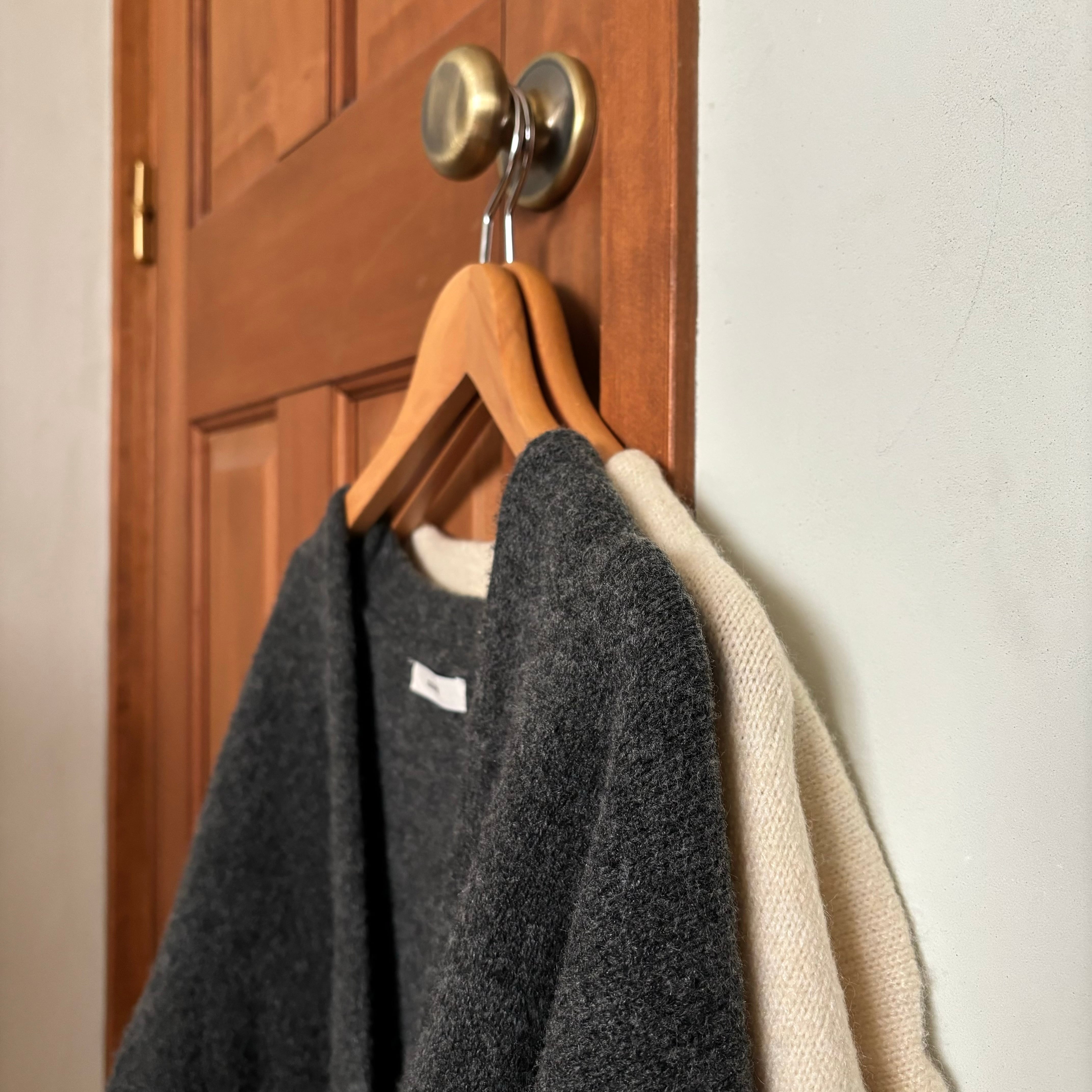 ベーシックに使えるクリームとチャコールの2色展開で、幅広いスタイリングに活躍します。