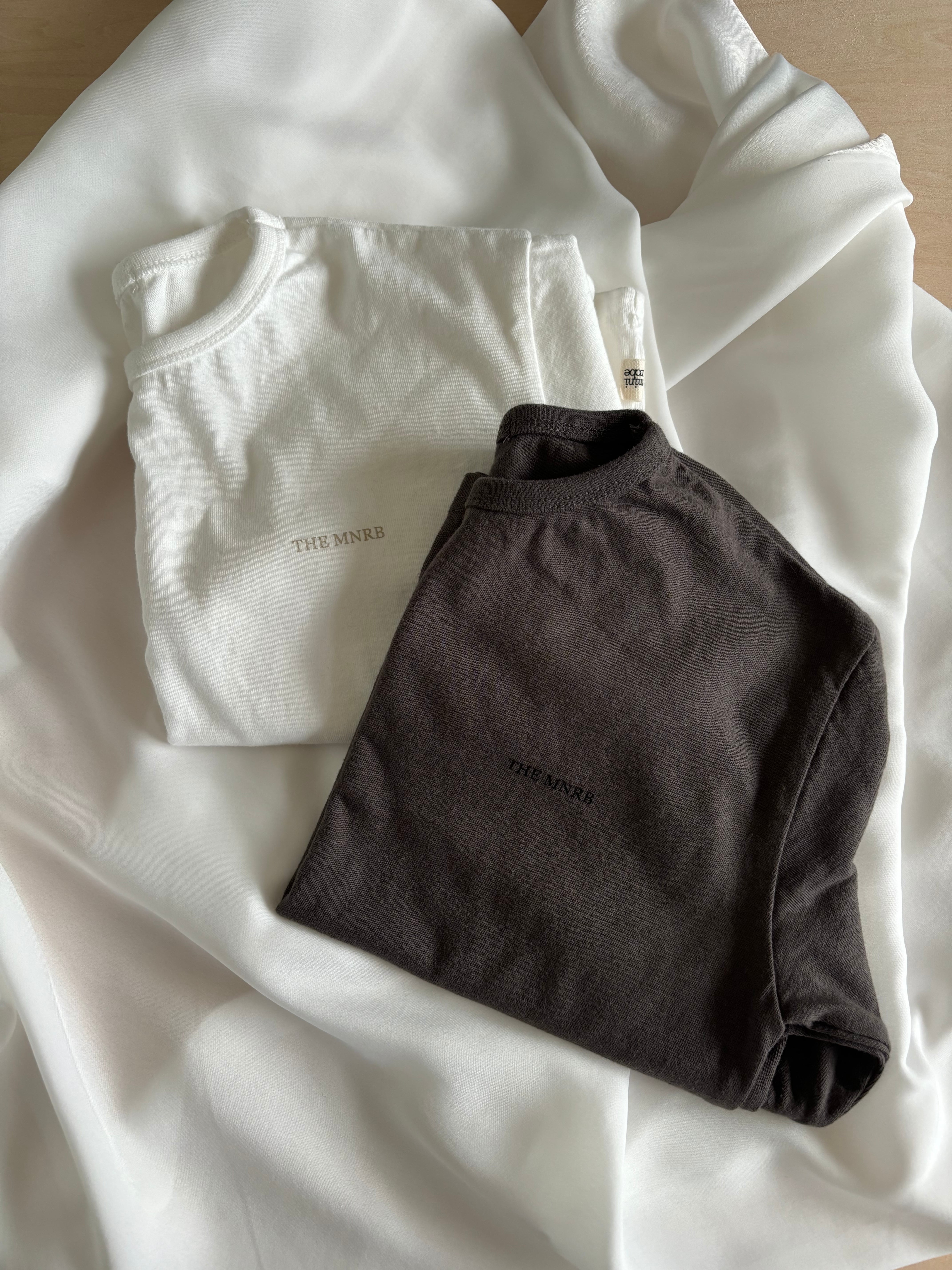ブランドロゴとタグをさりげなく散りばめた、シンプルで上品なTシャツ。